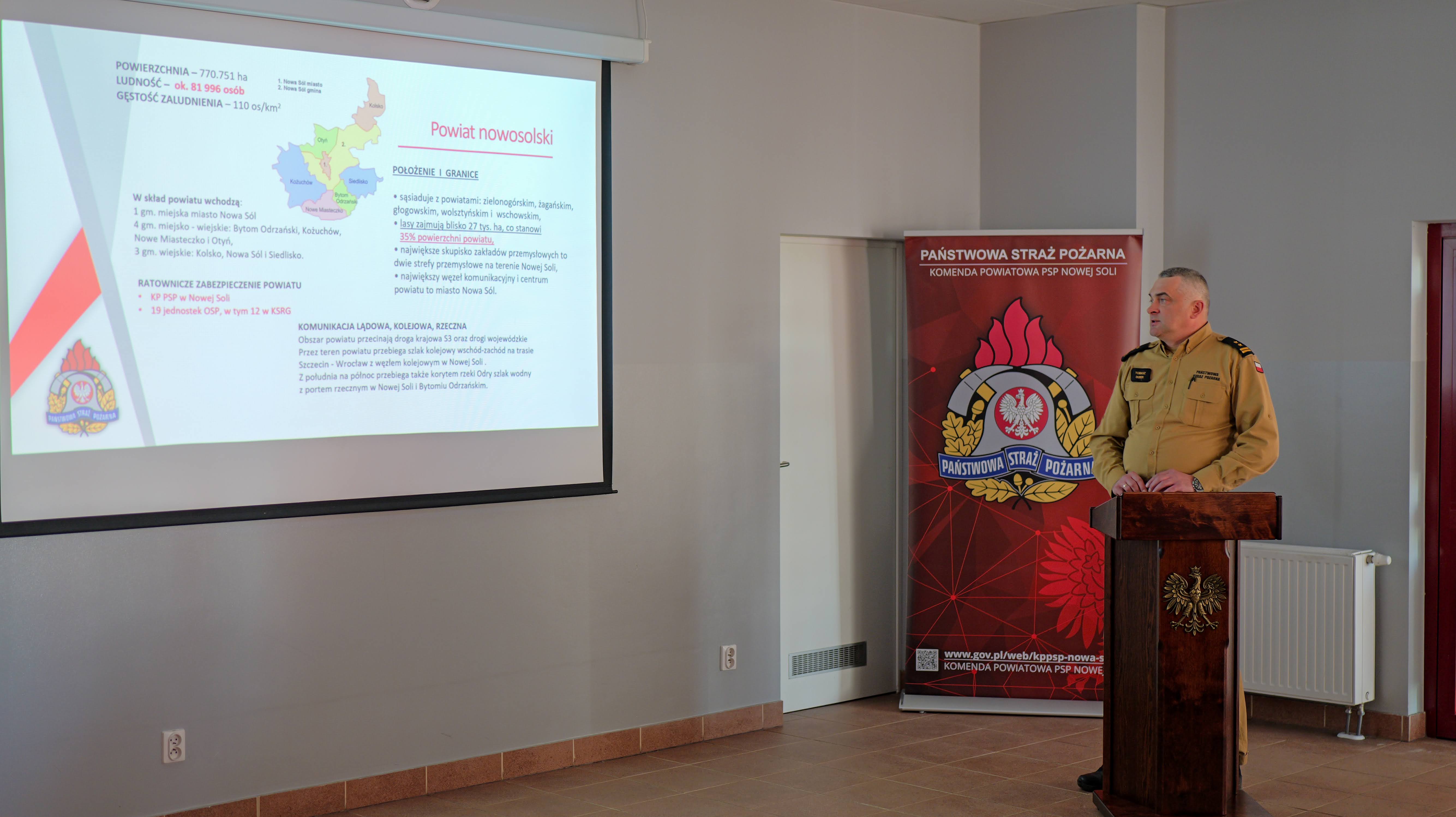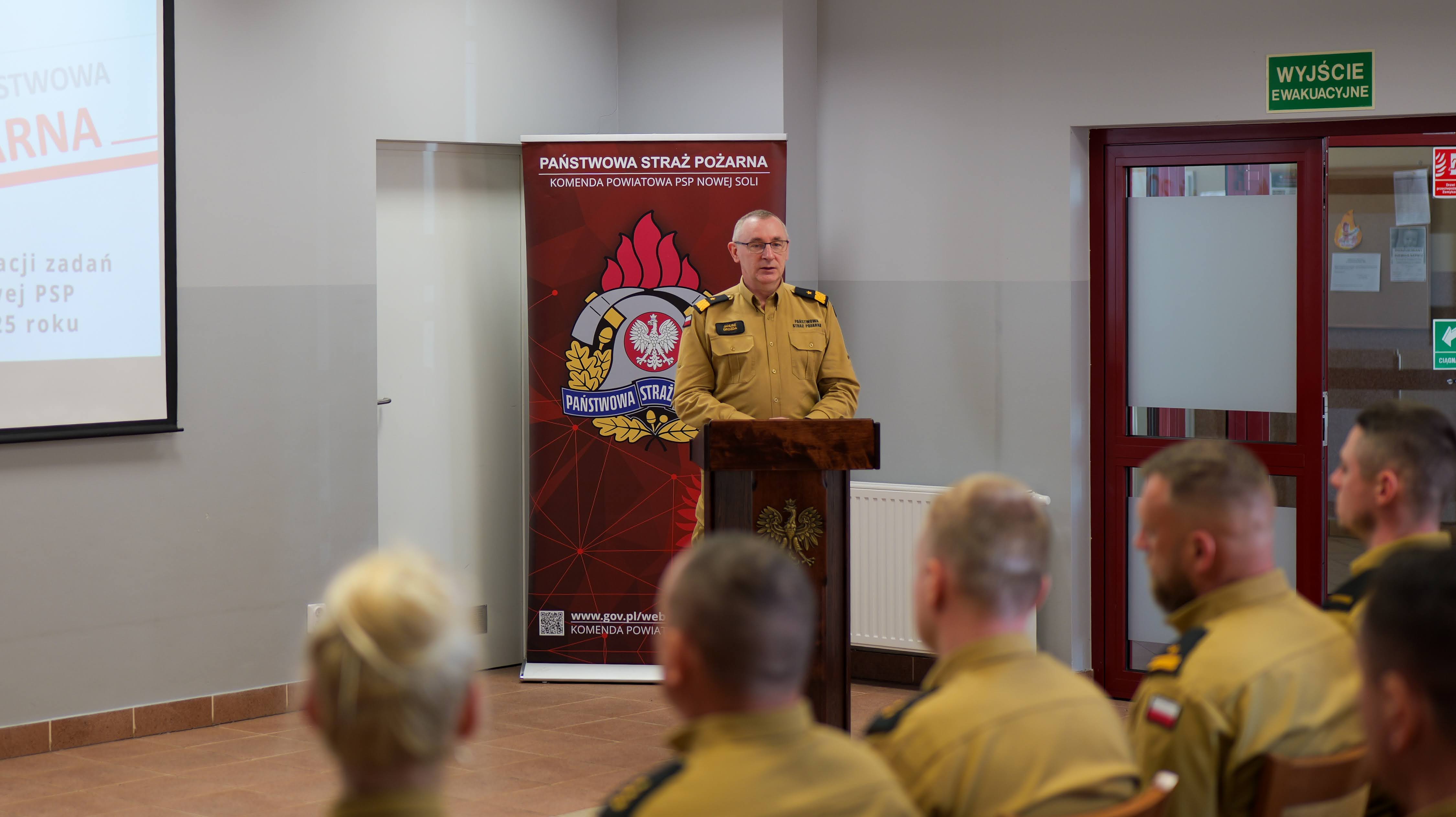 Podczas odprawy Komendant Powiatowy PSP w Nowej Soli bryg. Tomasz Duber przedstawił szczegółowe podsumowanie działalności operacyjnej, organizacyjnej i szkoleniowej jednostki. Omówił również główne kierunki rozwoju na kolejny rok.