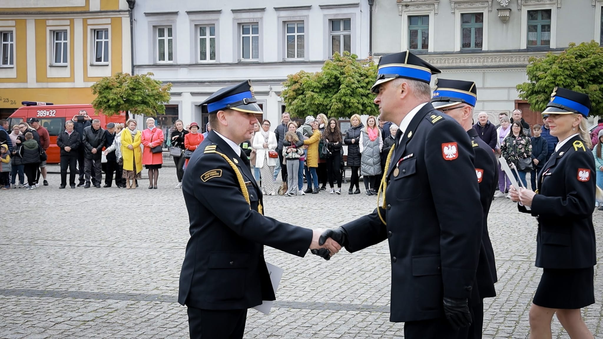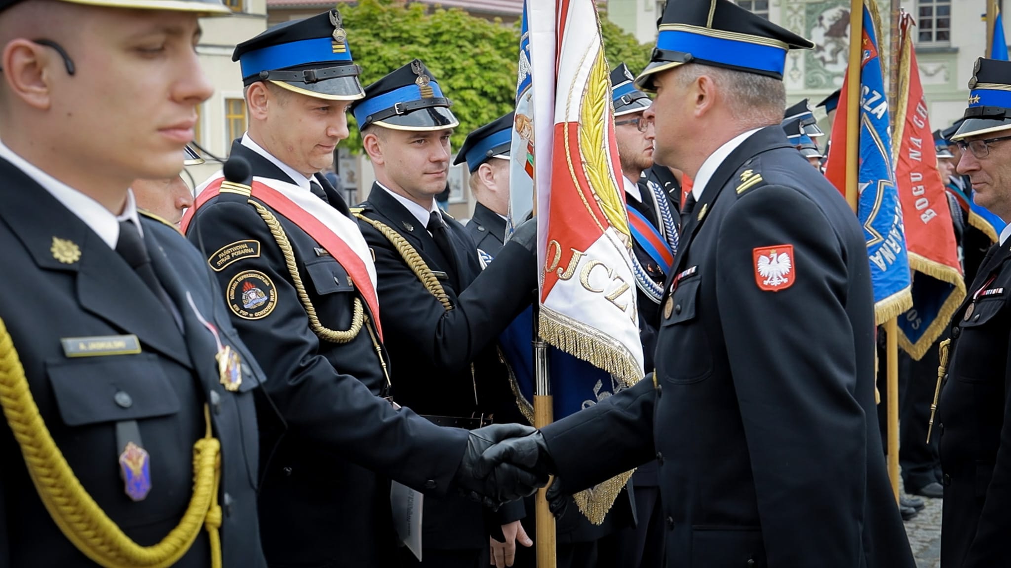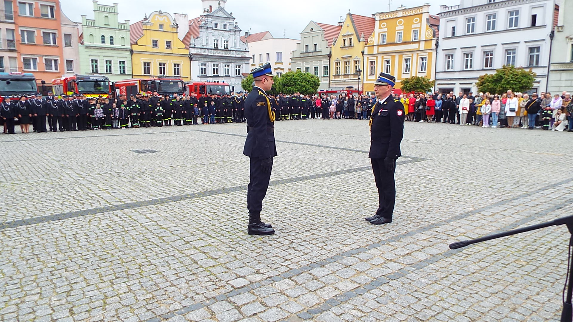 w intencji strażaków i ich rodzin. Następnie pododdziały i zaproszeni goście przemaszerowali na Rynek miasta, gdzie odbył się uroczysty apel, rozpoczęty od złożenia meldunku przed Zastępcą Lubuskiego Komendanta Wojewódzkiego Państwowej Straży Pożarnej st.bryg. Januszem Drozdą przez Dowódcę Uroczystości mł. asp. Artura Jaskulskiego.