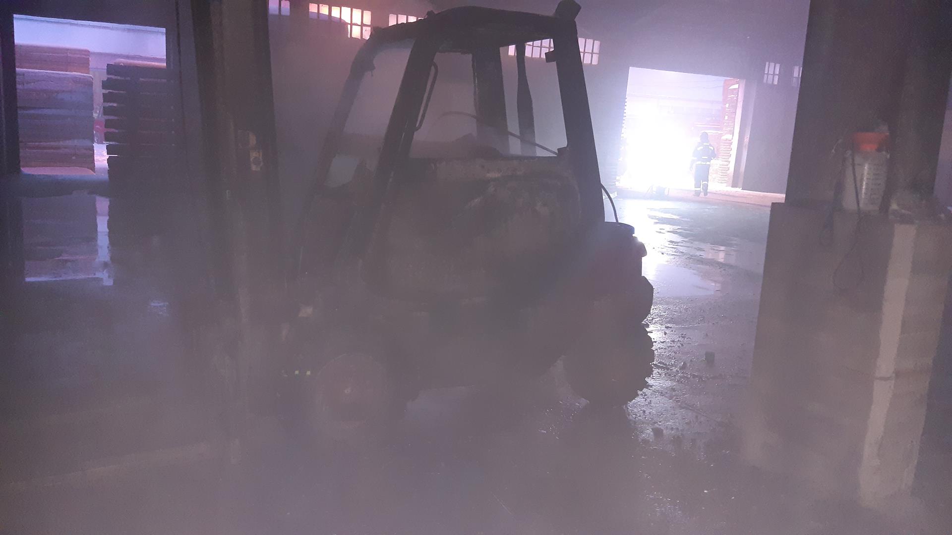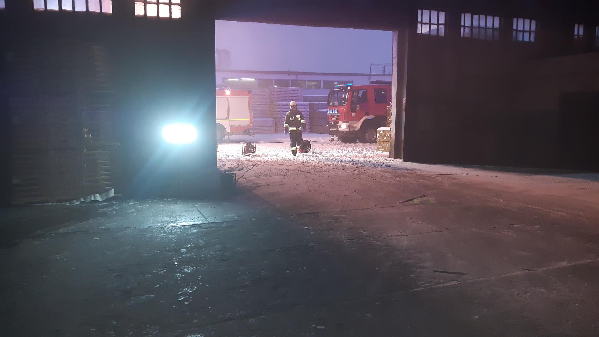 Ze względu na dużą ilość materiałów palnych zgromadzonych w magazynie do akcji wysłano sześć zastępów straży pożarnej. Po dotarciu na miejsce zdarzenia zastano palący się wózek widłowy. Ogień na szczęście nie rozprzestrzenił się na wyroby drewniane, a strażacy szybko ugasili pożar, po czym oddymili pomieszczenia.