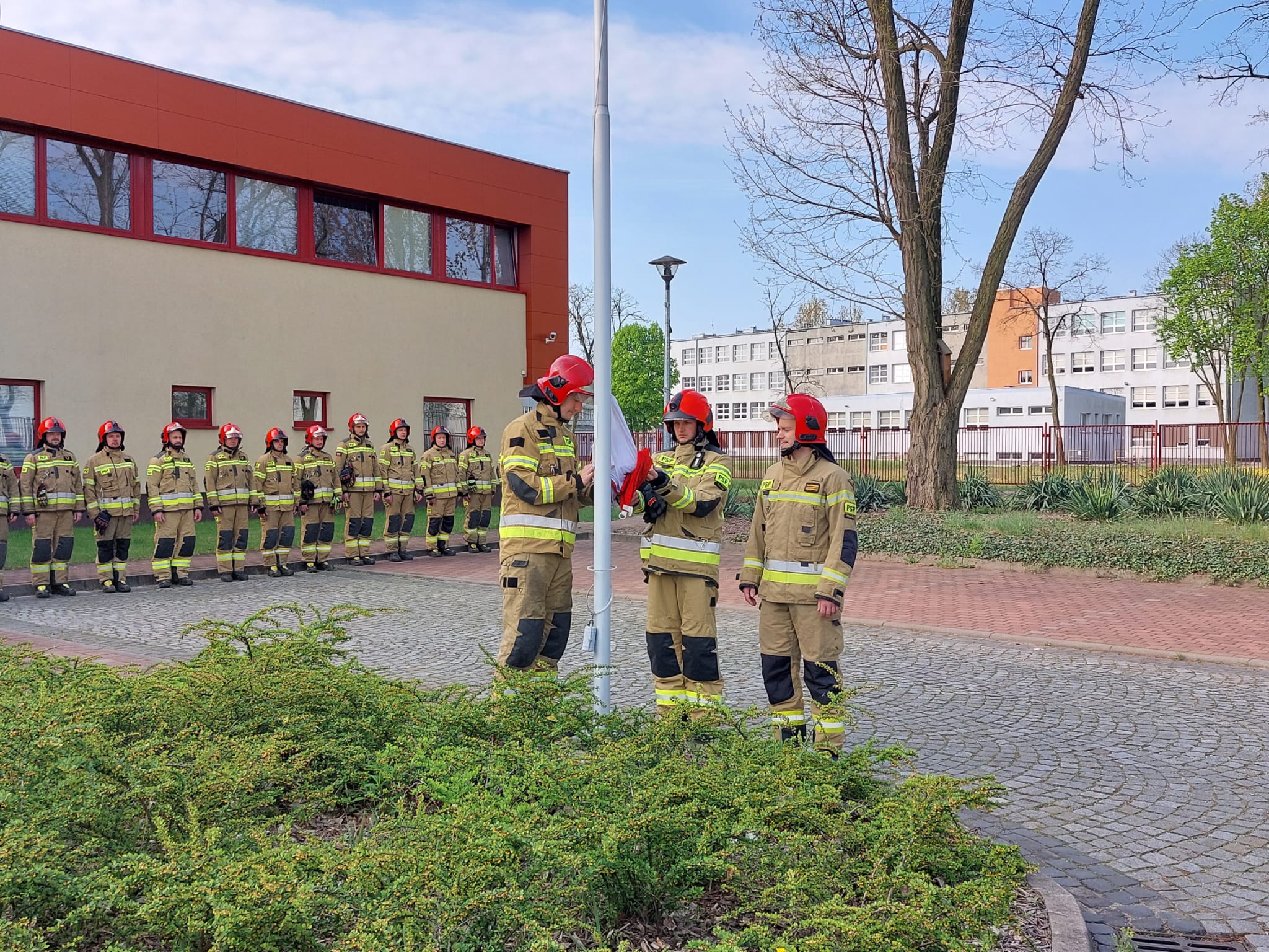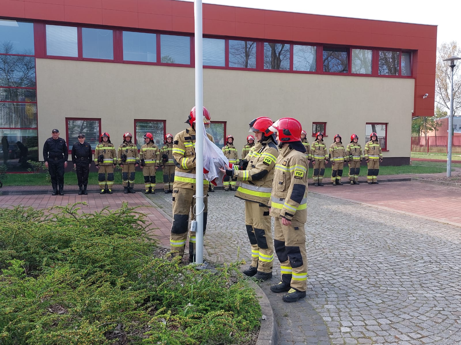 Strażacy z KP PSP w Nowej Soli w ten sposób uczcili to patriotyczne święto wszystkich Polaków poprzez podniesienie flagi państwowej przed budynkiem komendy.