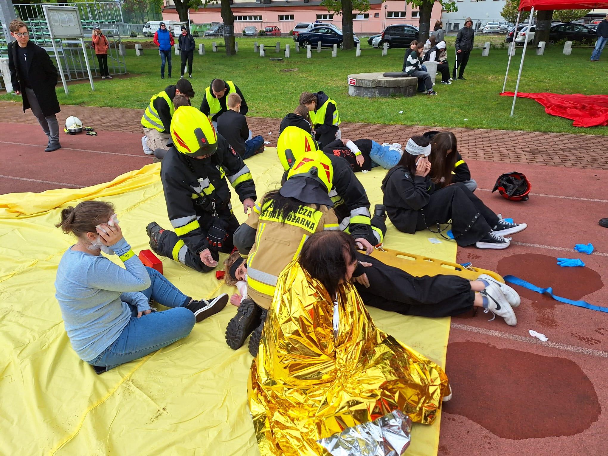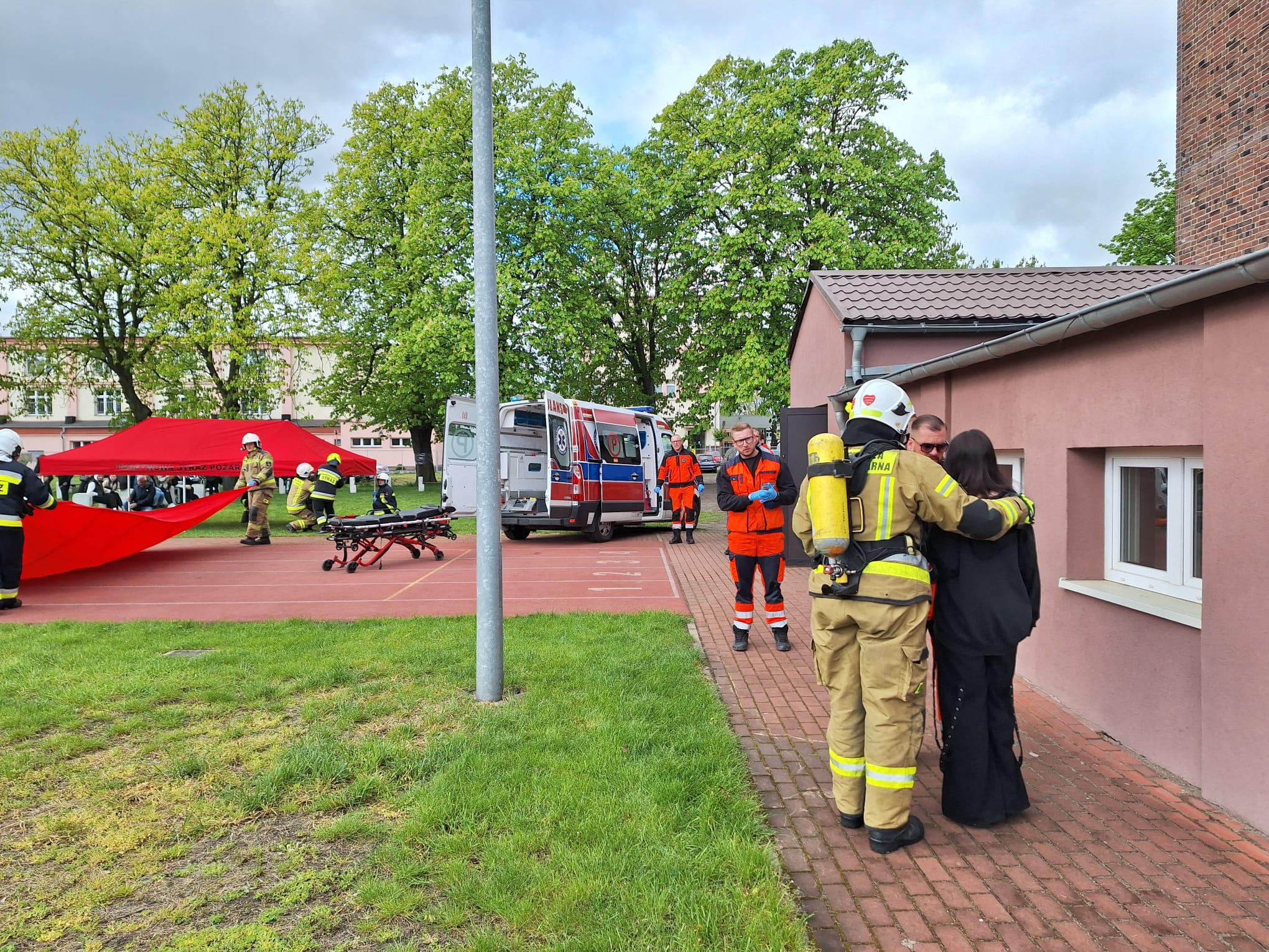 W dniu dzisiejszym tj. 18 kwietnia br. odbyły się ćwiczenia zgrywające jednostek KSRG z Zespołami Ratownictwa Medycznego. Scenariusz ćwiczeń przewidywał wybuch w klasie chemicznej Liceum Ogólnokształcącego im. K. K. Baczyńskiego w Nowej Soli. W działaniach ratowniczych brały udział zastępy z Jednostki Ratowniczo – Gaśniczej w Nowej Soli oraz zastępy z Ochotniczych Straży Pożarnych w Otyniu, Przyborowie i Nowym Miasteczku. W wyniku zdarzenia poszkodowanych zostało kilkanaście osób, które wymagały udzielenia natychmiastowej pomocy.