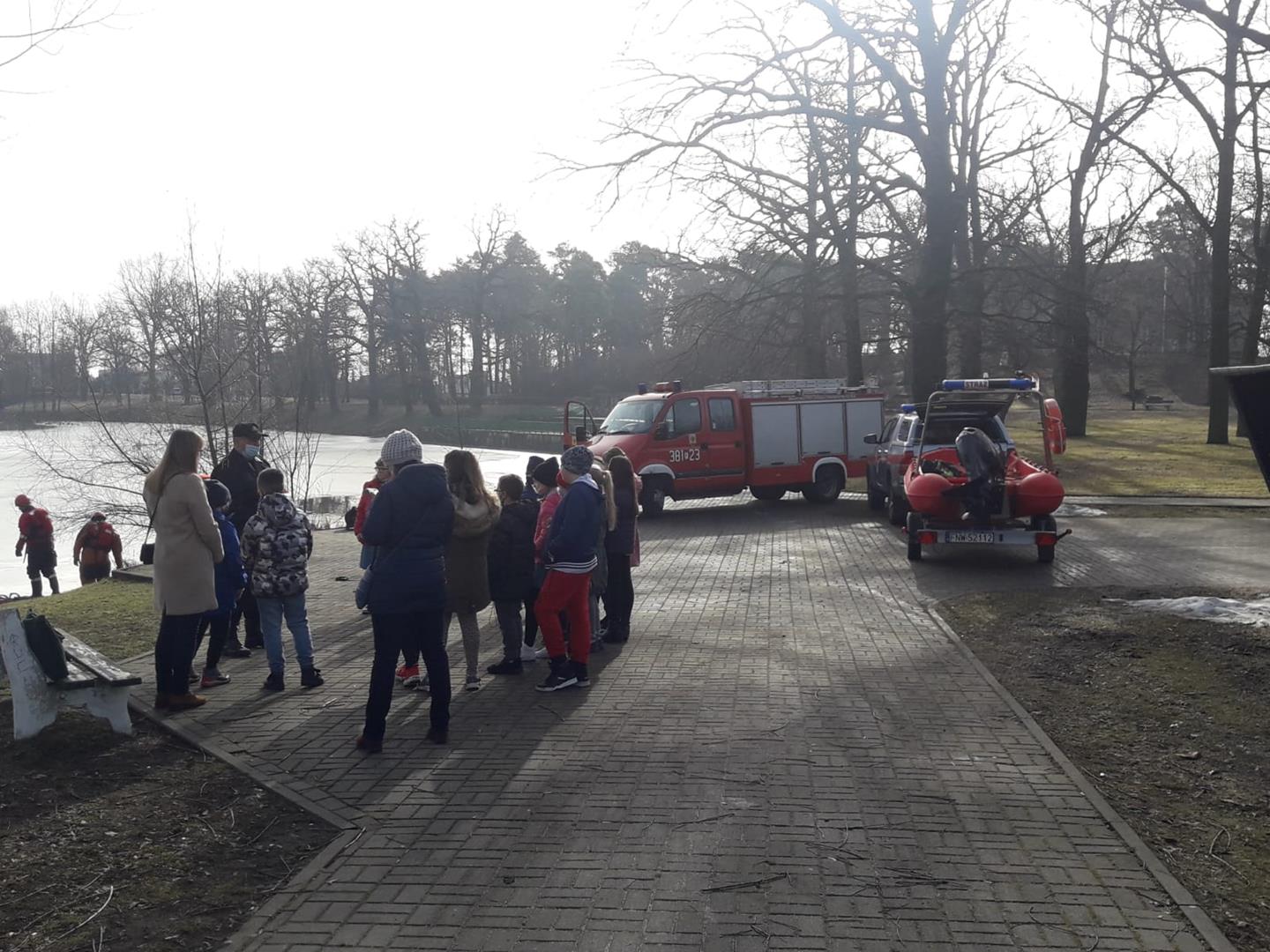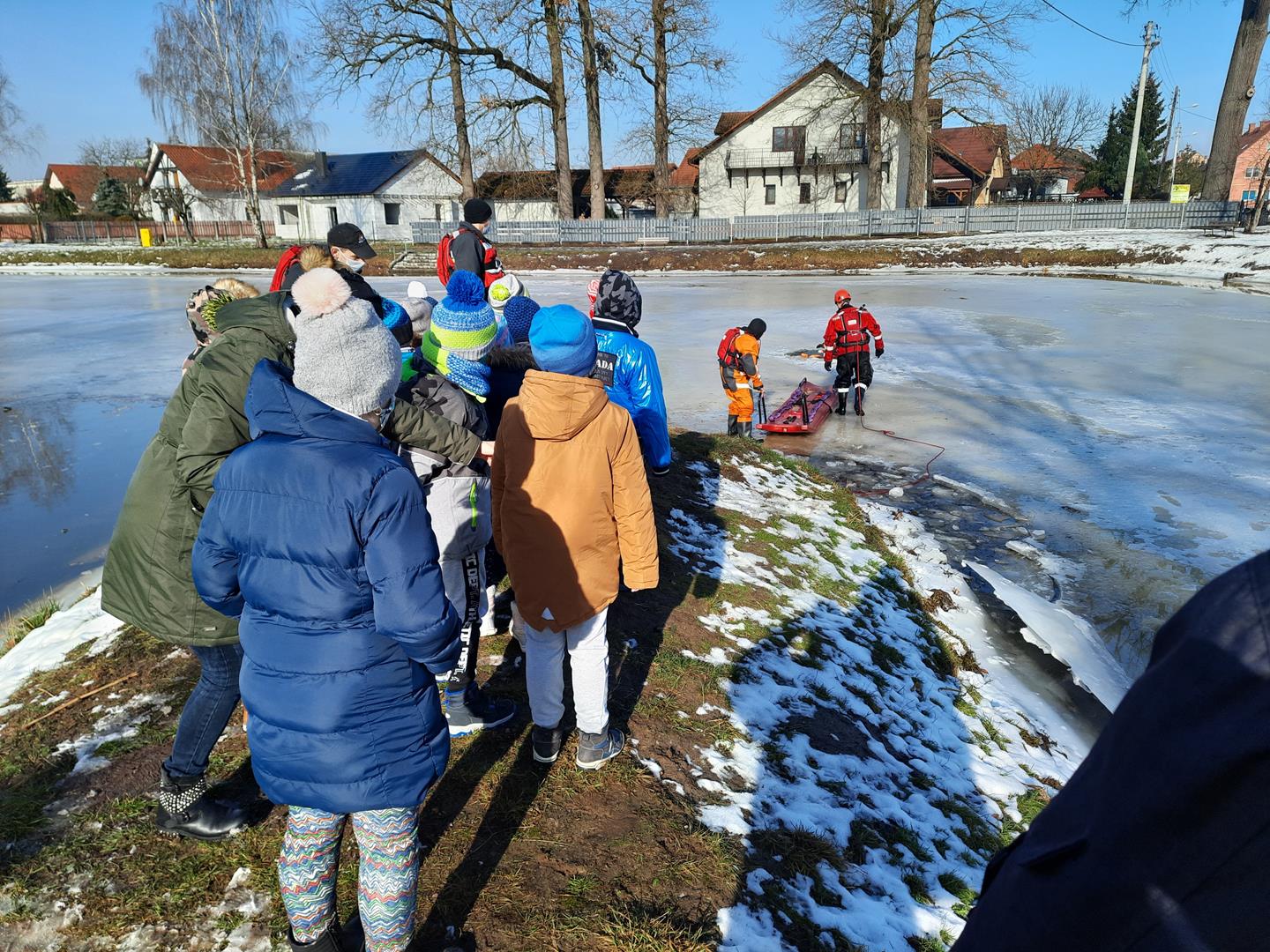 Aby nie dochodziło do sytuacji zagrożenia życia i zdrowia, strażacy z Komendy Powiatowej Państwowej Straży Pożarnej w Nowej Soli wraz Ochotniczą Strażą Pożarną w Otyniu przeprowadzili w dniu 18 lutego br. pogadankę na temat bezpieczeństwa na zamarzniętych akwenach, dla dzieci z Zespołu Szkół w Otyniu, gdzie w centrum miasta znajdują się stawy. Po zakończonej prelekcji strażacy wykonali pokaz ratowania tonącego za pomocą specjalistycznego sprzętu. Kolejną, podobną akcję strażacy z Nowej Soli przeprowadzili na akwenie „Kacza Górka” w dniu dzisiejszym tj. 24 lutego br., w której uczestniczyły dzieci ze Szkoły Podstawowej nr 2, w Nowej Soli. Dodatnia temperatura panująca na zewnątrz pokazała dzieciom, że chodzenie po cienkim lodzie może bezpośrednio zagrażać ich życiu.