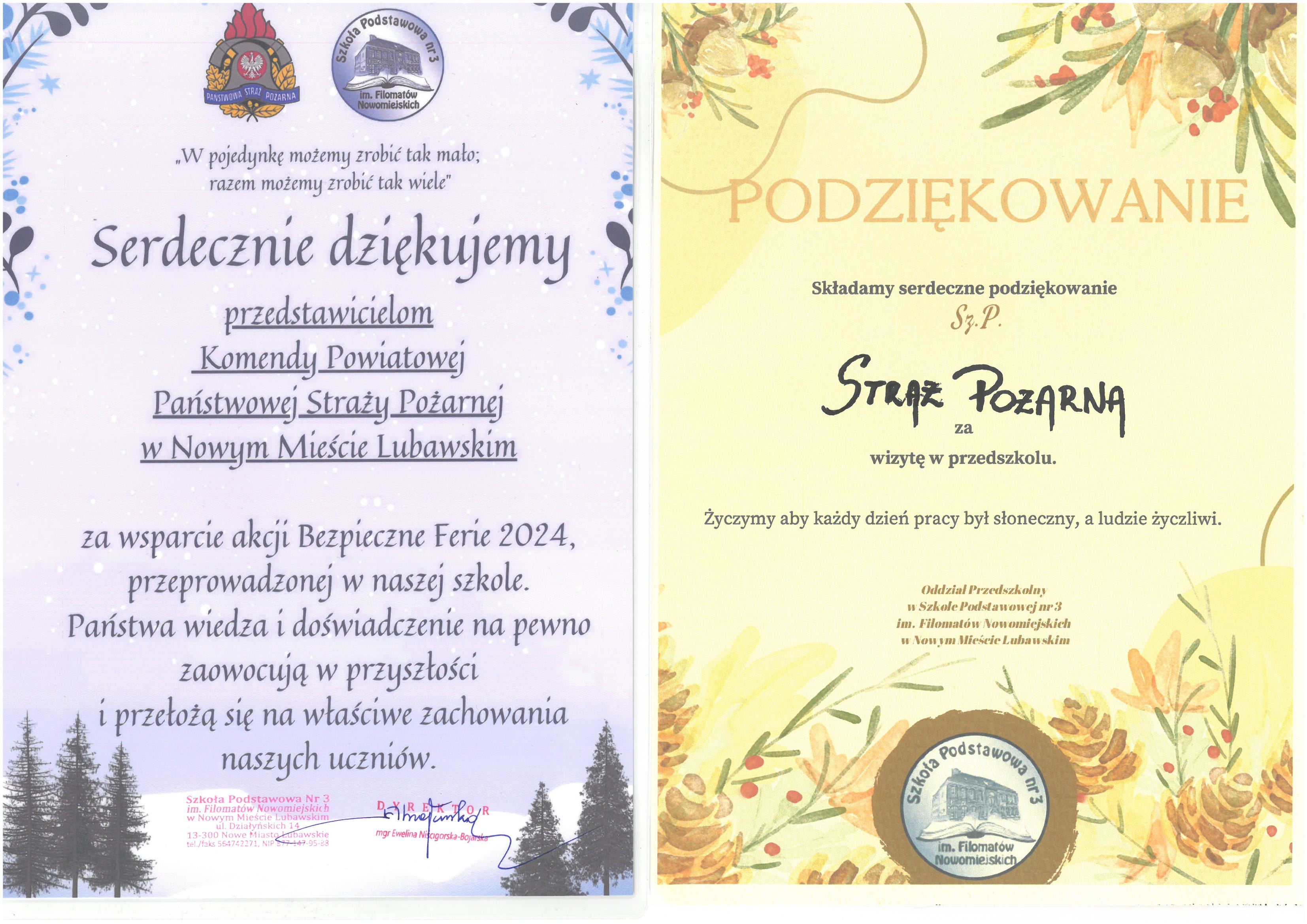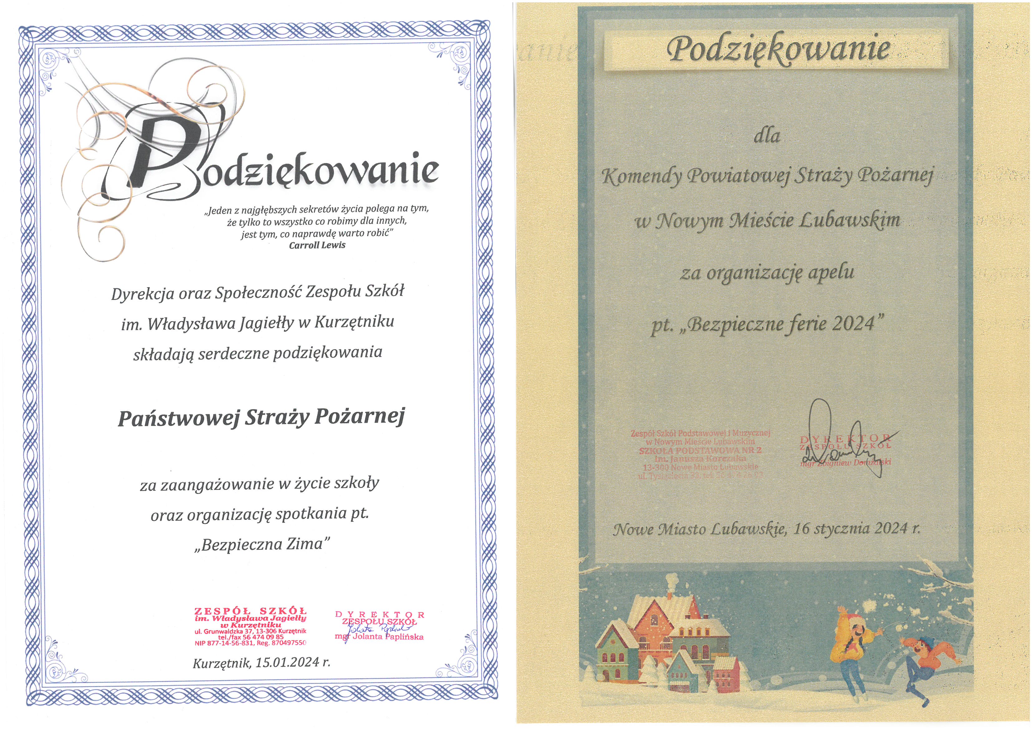 Przyłączając się do kampanii „Bezpieczne Ferie - 2024” ,. strażacy z Komendy Powiatowej w NML wzięli udział w pogadankach z uczniami z okolicznych Szkół. W trakcie spotkania zwrócono uwagę na prawidłowy sposób alarmowania służb ratowniczych w przypadku zagrożenia, wskazano sposoby zachowa się w sytuacji zagrożenia m.in. podczas załamania się lodu, silnego mrozu, śnieżycy oraz pierwszych działań przy zatruciach tlenkiem węgla. Zaapelowano o zachowanie szczególnej ostrożności przy zjazdach na sankach i nartach w obrębie dróg publicznych i wykorzystaniem odblasków podczas poruszania się po drogach po zmroku.