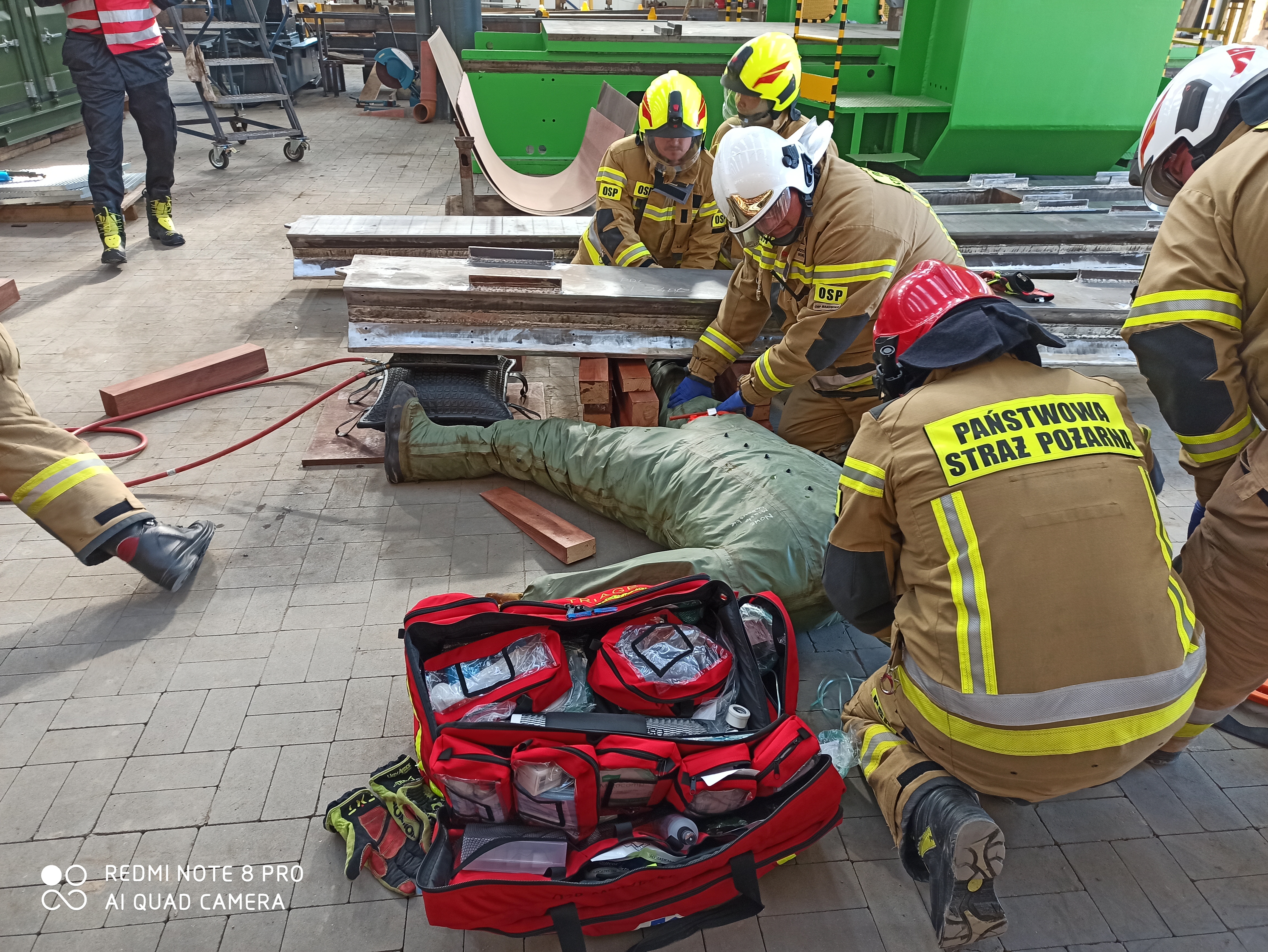 Zgodnie z założeniami, przed przyjazdem zastępów straży pożarnej kierownictwo firmy zarządziło ewakuację pracowników całego zakładu. Działania straży obejmowały realizację zadań w zakresie gaszenia pożarów wewnętrznych, ratownictwa technicznego, udzielanie pomocy w ramach kwalifikowanej pierwszej pomocy, organizację łączności i współdziałanie poszczególnych związków taktycznych jednostek ochrony przeciwpożarowej.