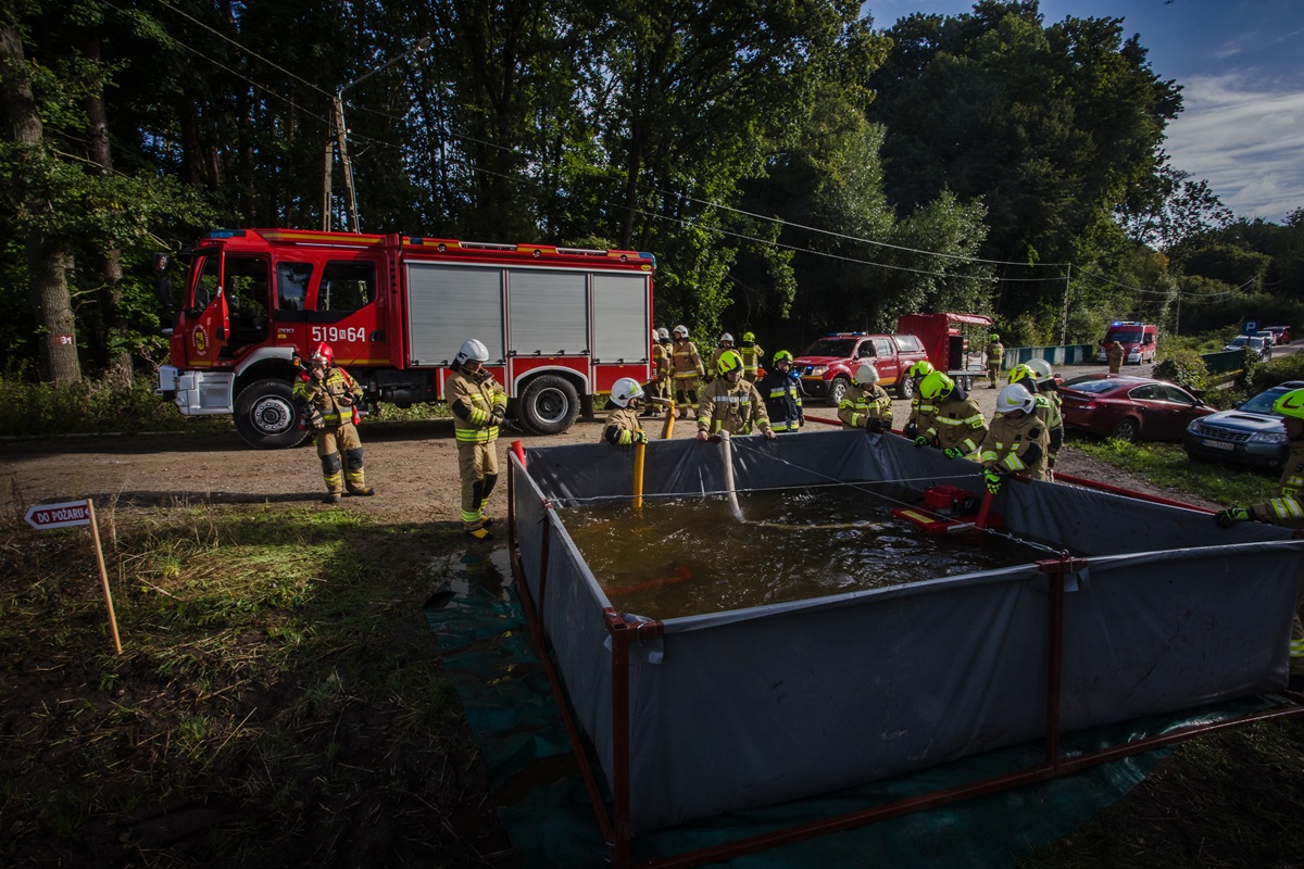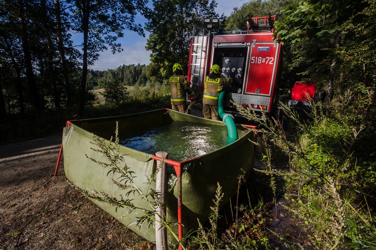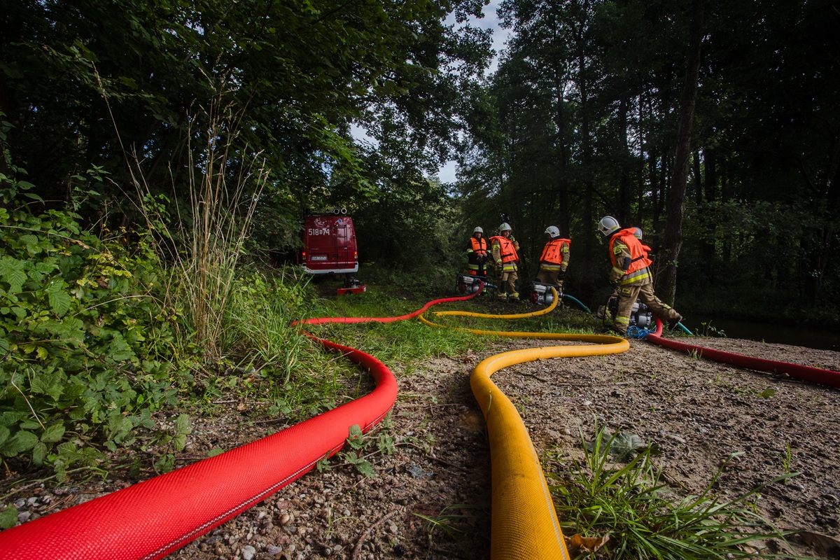 - użycie specjalistycznego sprzętu, w tym sprzętu niezbędnego do budowy układu przepompowywania wody na duże odległości z wykorzystaniem motopomp przenośnych, autopomp samochodów ratowniczo-gaśniczych oraz przenośnych zbiorników na wodę o pojemnościach 5 m3 i 16m3,