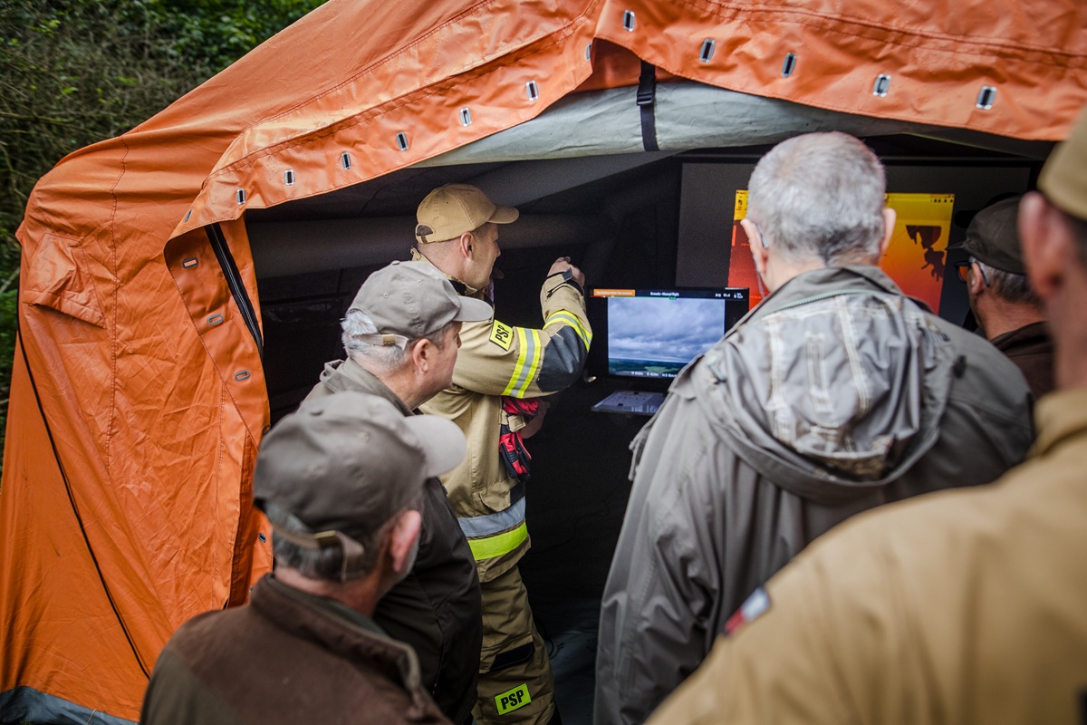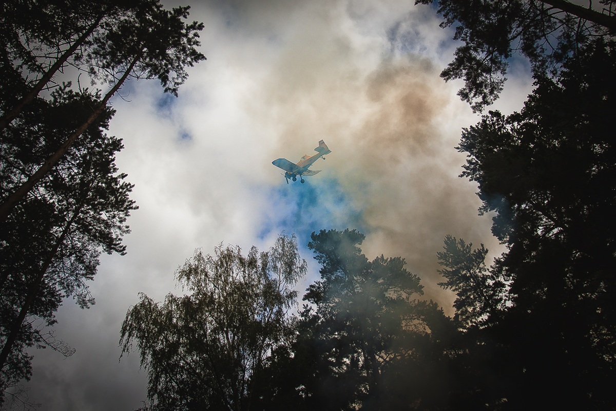 Wyjątkowym i widowiskowym momentem ćwiczeń było wsparcie działań gaśniczych z powietrza przez samolot gaśniczy PZL M18 Dromader, który przyleciał z bazy w Szymanach. Pilot samolotu po wykonaniu przelotu rozpoznawczego nad miejscem pożaru wykonał zrzut wody na pożar. Wsparcie gaśnicze z powietrza, które wykonał samolot, okazało się efektywne i z pewnością będzie wykorzystywane podczas rzeczywistych zdarzeń realizowanych przez służby w przyszłości.