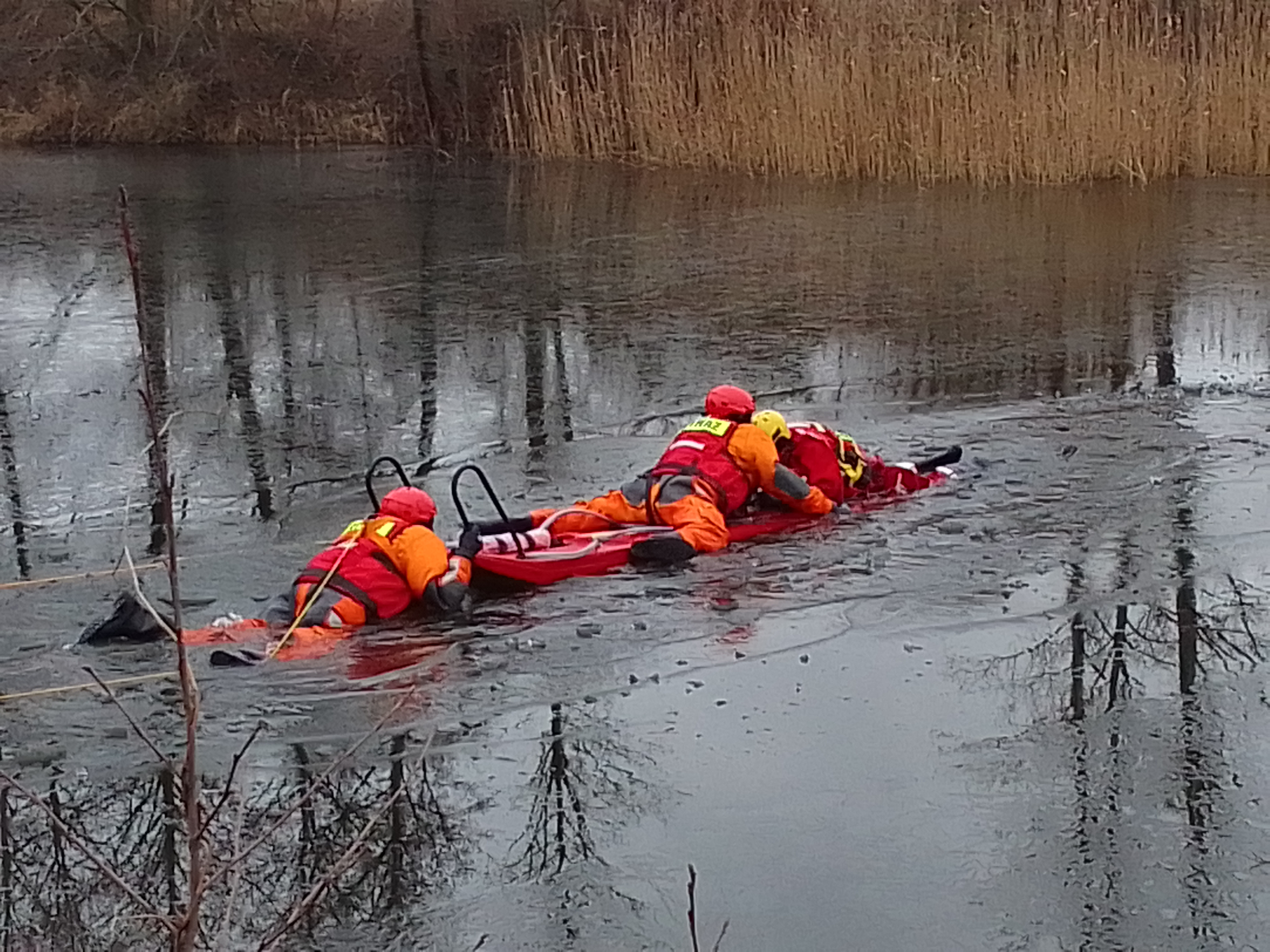 13 lutego 2023 roku na zamarzniętym jeziorze Nielbark odbyły się ćwiczenia z zakresu ratownictwa lodowego. W ćwiczeniach udział wzięła JRG PSP w Nowym Mieście Lub. oraz jednostka OSP Nielbark dysponująca sprzętem do ratownictwa wodnego. Celem ćwiczeń było doskonalenie zasad pracy w ubraniach wypornościowych, techniki ewakuacji poszkodowanego z przerębla oraz poruszanie się po lodzie przy użyciu podstawowego sprzętu do ratownictwa lodowego. W ćwiczeniach wykorzystano sanie przeznaczone do poruszania się po lodzie, ubrania do pracy w wodzie, linki ratownicze i kamizelki asekuracyjne. Zmagania strażaków obserwował przedstawiciel Wód Polskich i strażacy ochotnicy z miejscowej OSP Nielbark.