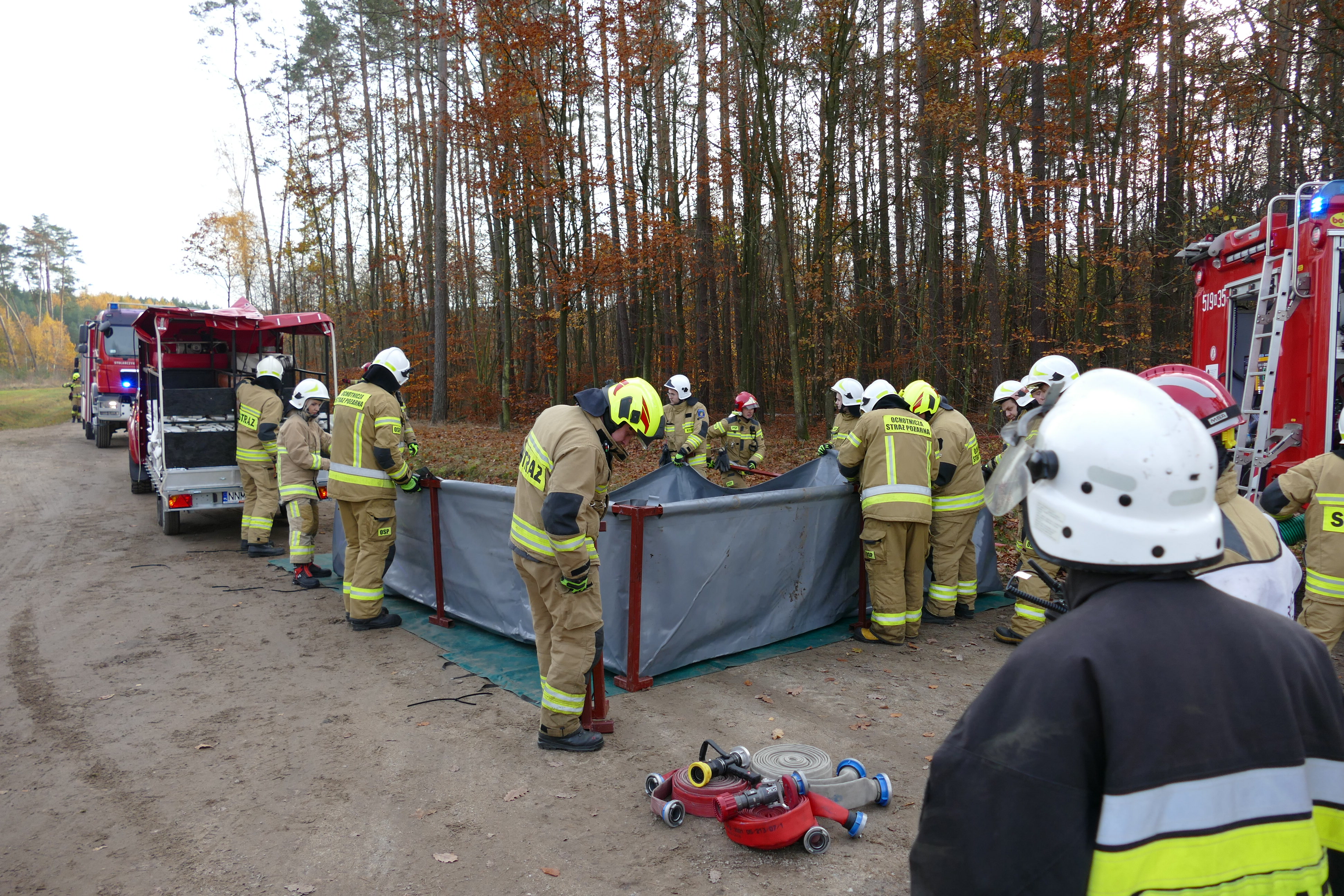 Przebieg ćwiczeń obserwował Starosta Nowomiejski, Komendant Powiatowy PSP w NML, Wójt Gminy Biskupiec, Komendant Gminny ZOSP w Biskupcu oraz przedstawiciele Lasów Nadleśnictwa Jamy.