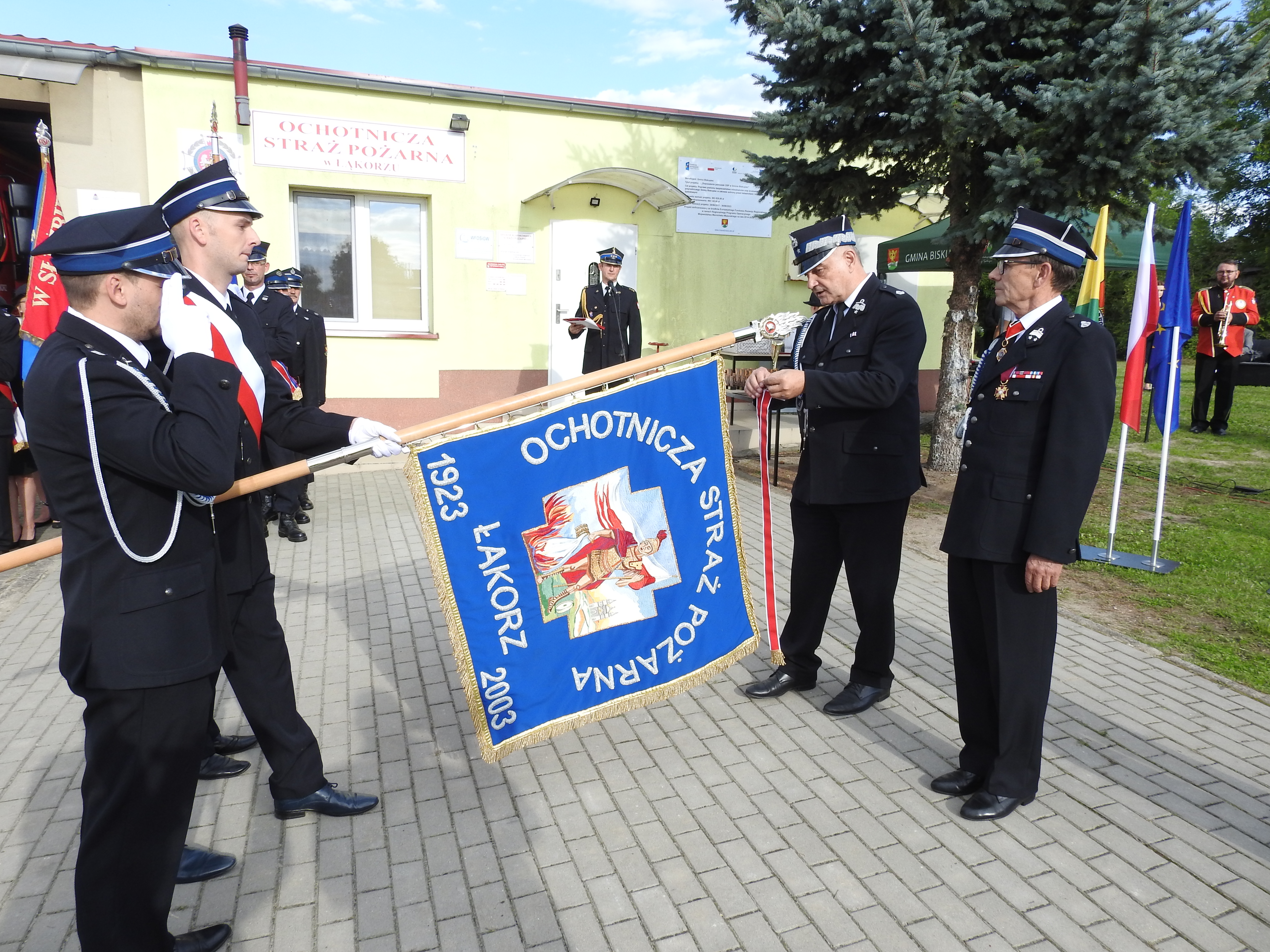 W piątkowe popołudnie 11 sierpnia na placu przed remizą Ochotniczej Straży Pożarnej w Łąkorzu gm. Biskupiec odbyła się podniosła uroczystość związana z obchodami 100–lecia istnienia jednostki. Uroczystość rozpoczęła się mszą św. celebrowaną przez ks. Bernarda Zakrzewskiego, ks. Macieja Górkę i ks. Wojciecha Badacha w kościele parafialnym w Łąkorzu.
