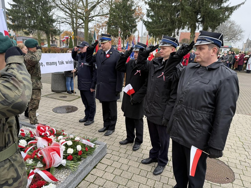 Z tej okazji bryg. Krzysztof Szałkowski Komendant Powiatowy PSP wziął udział w Mszy Świętej w intencji Ojczyzny oraz symbolicznym złożeniu kwiatów za poległych w walce o niepodległość w Biskupcu, natomiast mł. bryg. Kamil Szczech Zastępca Komendanta Powiatowego PSP uczestniczył w Apelu Poległych i Modlitwie w intencji Ojczyzny przy Kapliczce Trzy Dęby w Bratianie.