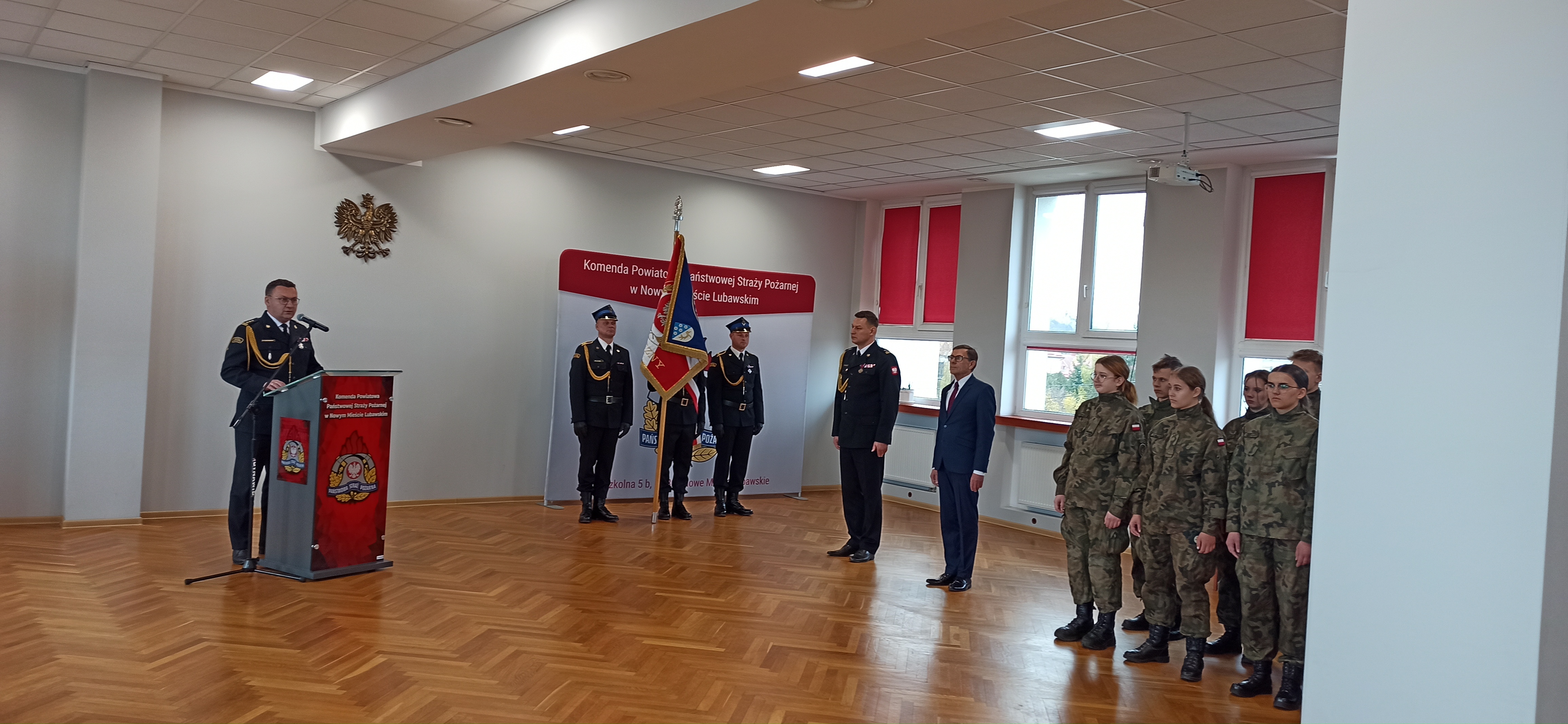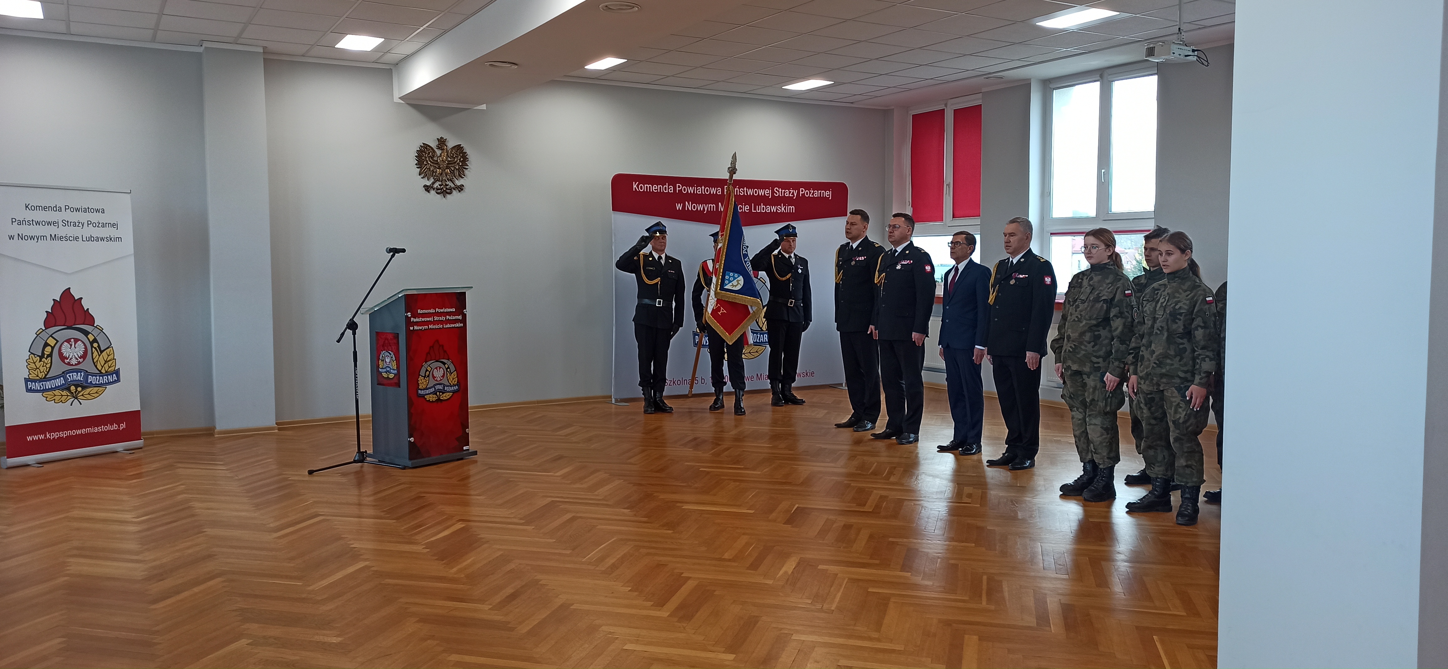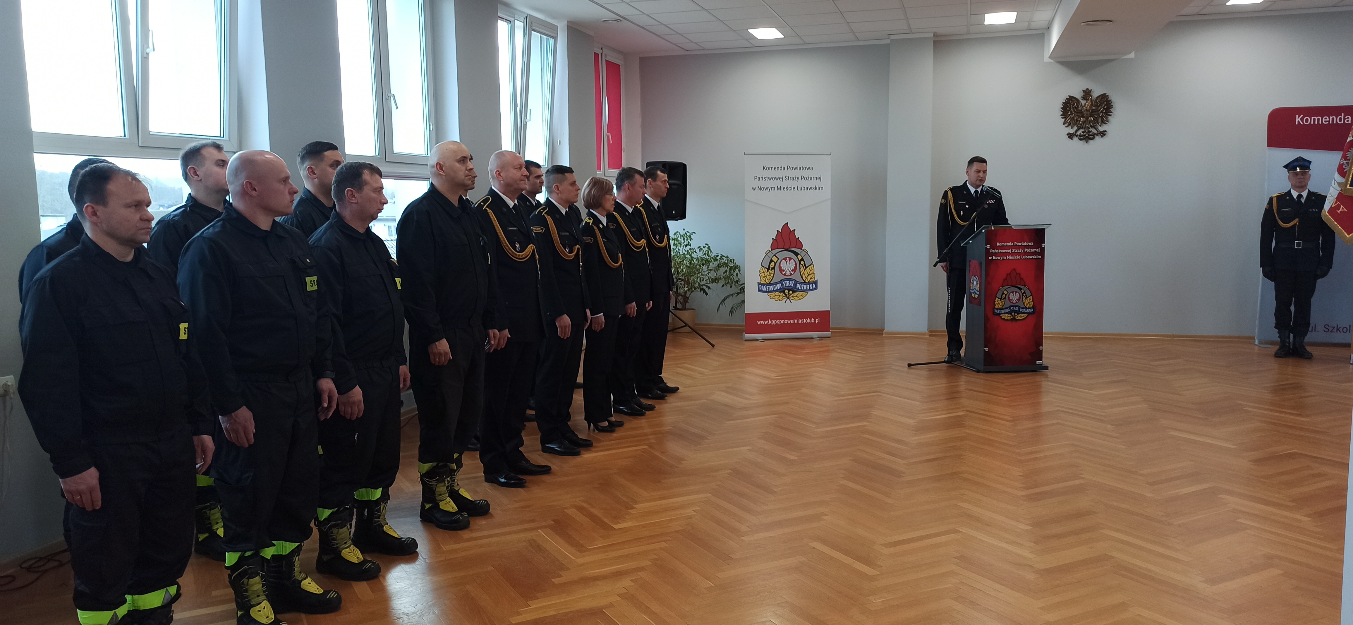 Strażacy z Komendy Powiatowej PSP w Nowym Mieście Lubawskim Narodowe Święto Niepodległości obchodzili biorąc udział w patriotycznych uroczystościach organizowanych przez samorządy lokalne oraz organizując wewnętrzną uroczystość, która miała miejsce w siedzibie komendy 16 listopada.