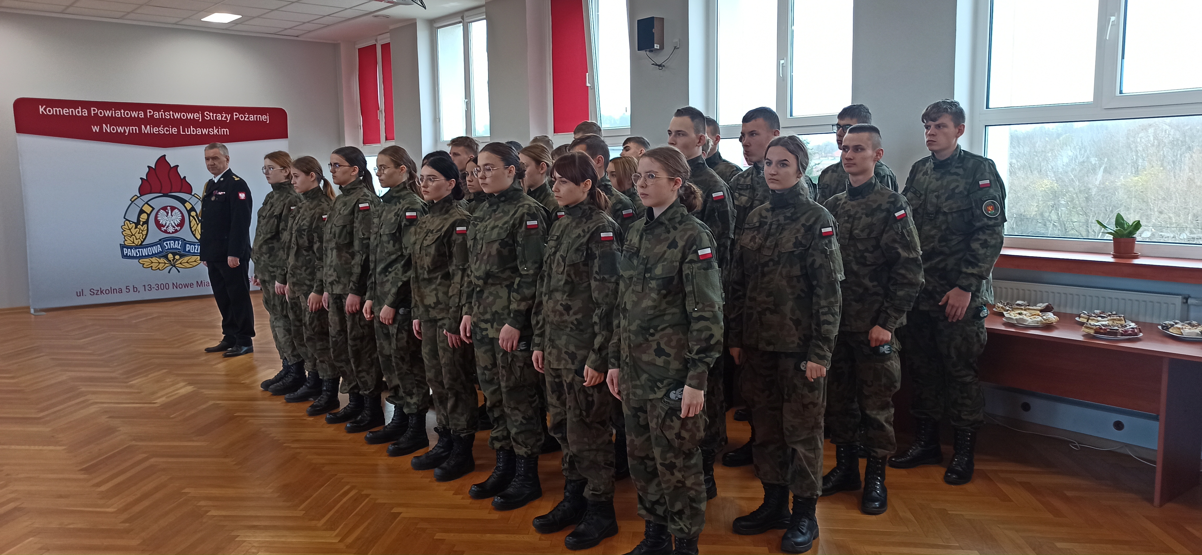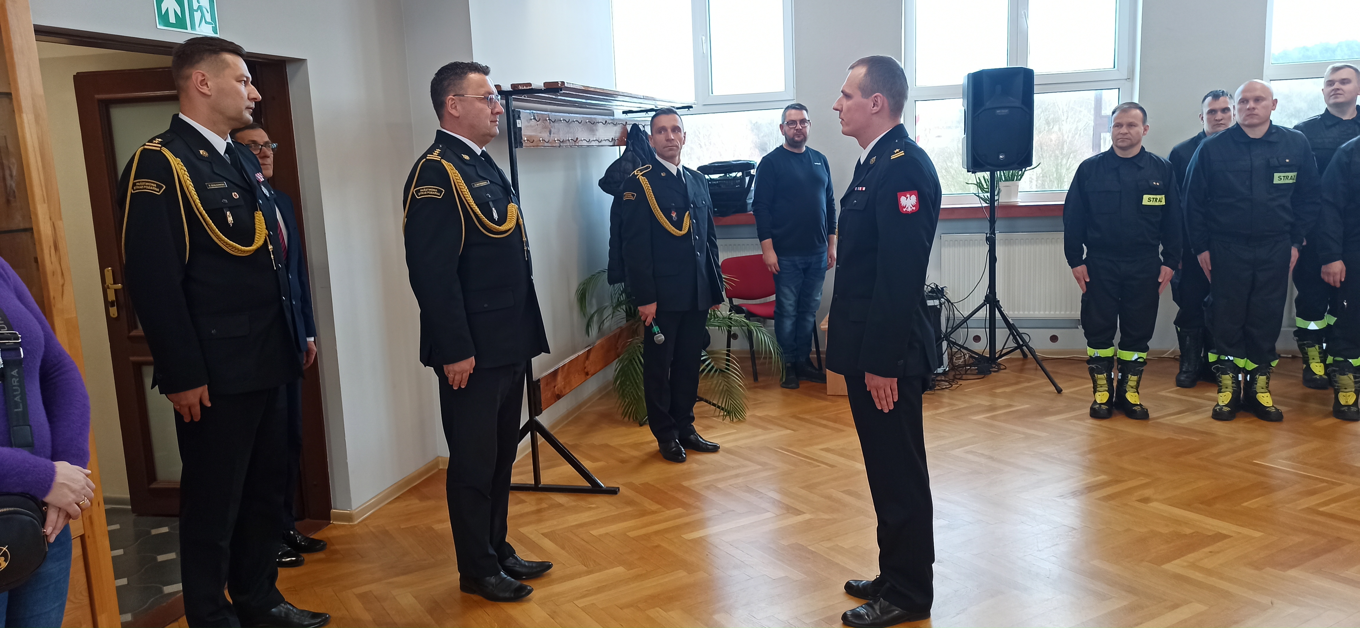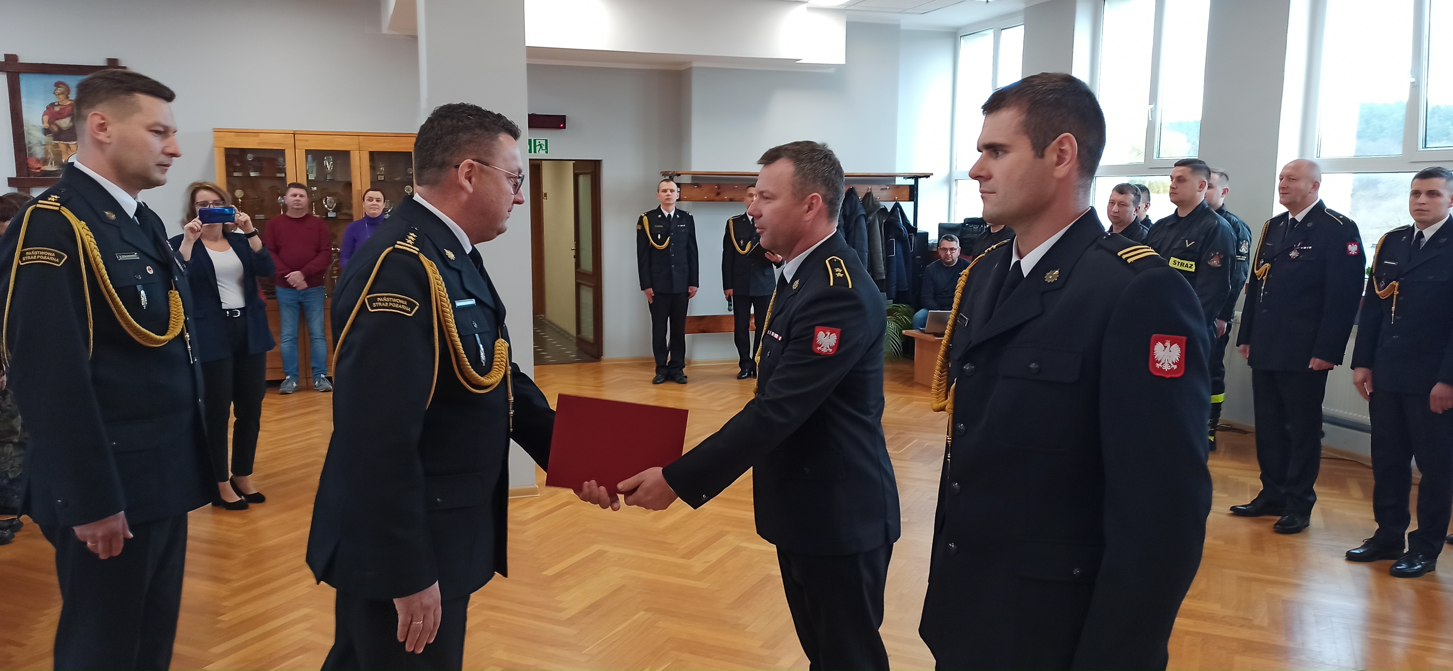 Z tej okazji na uroczystej zbiórce, w której wziął udział st. bryg. Tomasz Ostrowski Zastępca Warmińsko-Mazurskiego Komendanta Wojewódzkiego PSP, Starosta Nowomiejski, uczniowie Liceum Ogólnokształcącego Służb Mundurowych w Bielicach oraz funkcjonariusze i pracownicy cywilni komendy, zostały wręczone funkcjonariuszom decyzje o wyróżnieniu nagrodami pieniężnymi, które przyznał nadbryg. Tomasz Komoszyński Warmińsko-Mazurski Komendant Wojewódzki PSP, wręczono awanse na wyższe stopnie służbowe oraz decyzję o przyznaniu nagrody jubileuszowej za 20 lat pracy i służby.