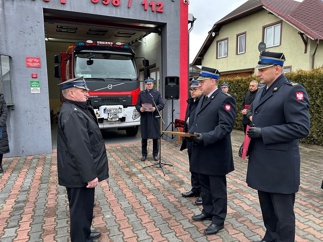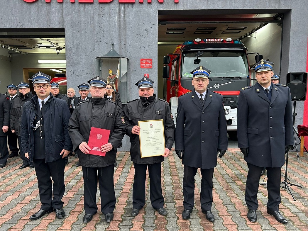 Podczas uroczystości w imieniu Komendanta Głównego Państwowej Straży Pożarnej st. bryg. Tomasz Ostrowski wręczył zarządowi OSP Gwiździny decyzję o włączeniu jednostki do KSRG.
