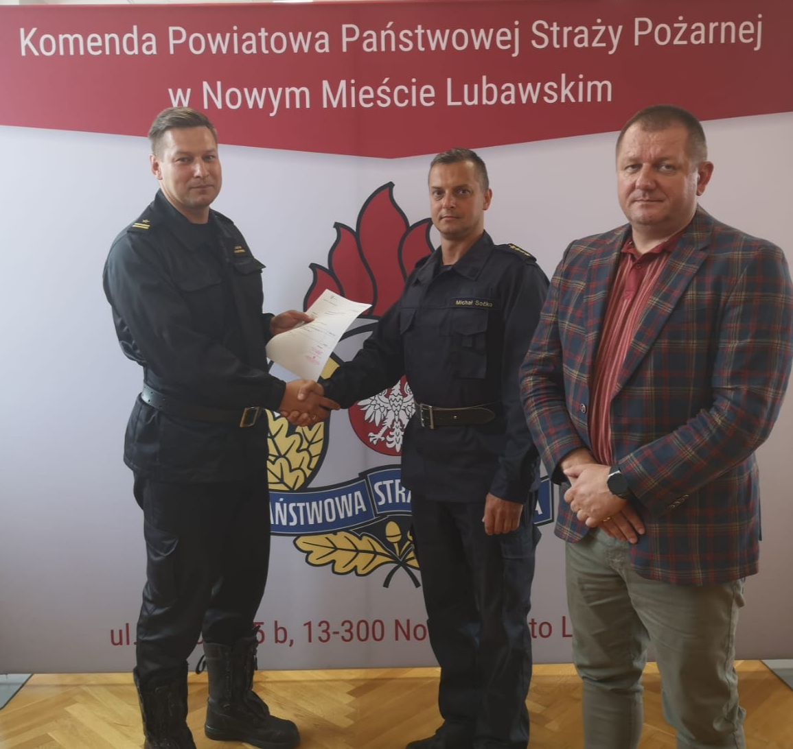 Oficjalne przekazanie sprzętu i podpisanie protokołu przedmiotu darowizny odbyło się 14 września w Komendzie Powiatowej PSP w Nowym Mieście Lubawskim.