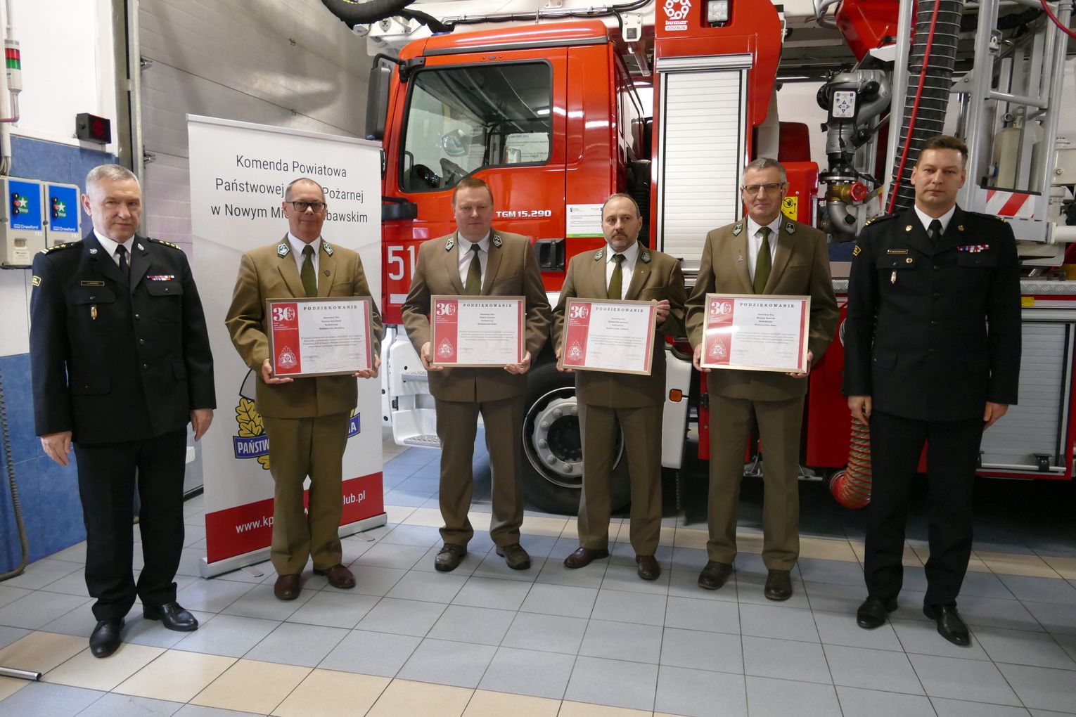 Podziękowania dla Nadleśniczych za zakupiony i przekazany nowomiejskim strażakom sprzęt techniczny i ratowniczy przekazał Komendant Powiatowy PSP w NML mł. bryg. Krzysztof Szałkowski.