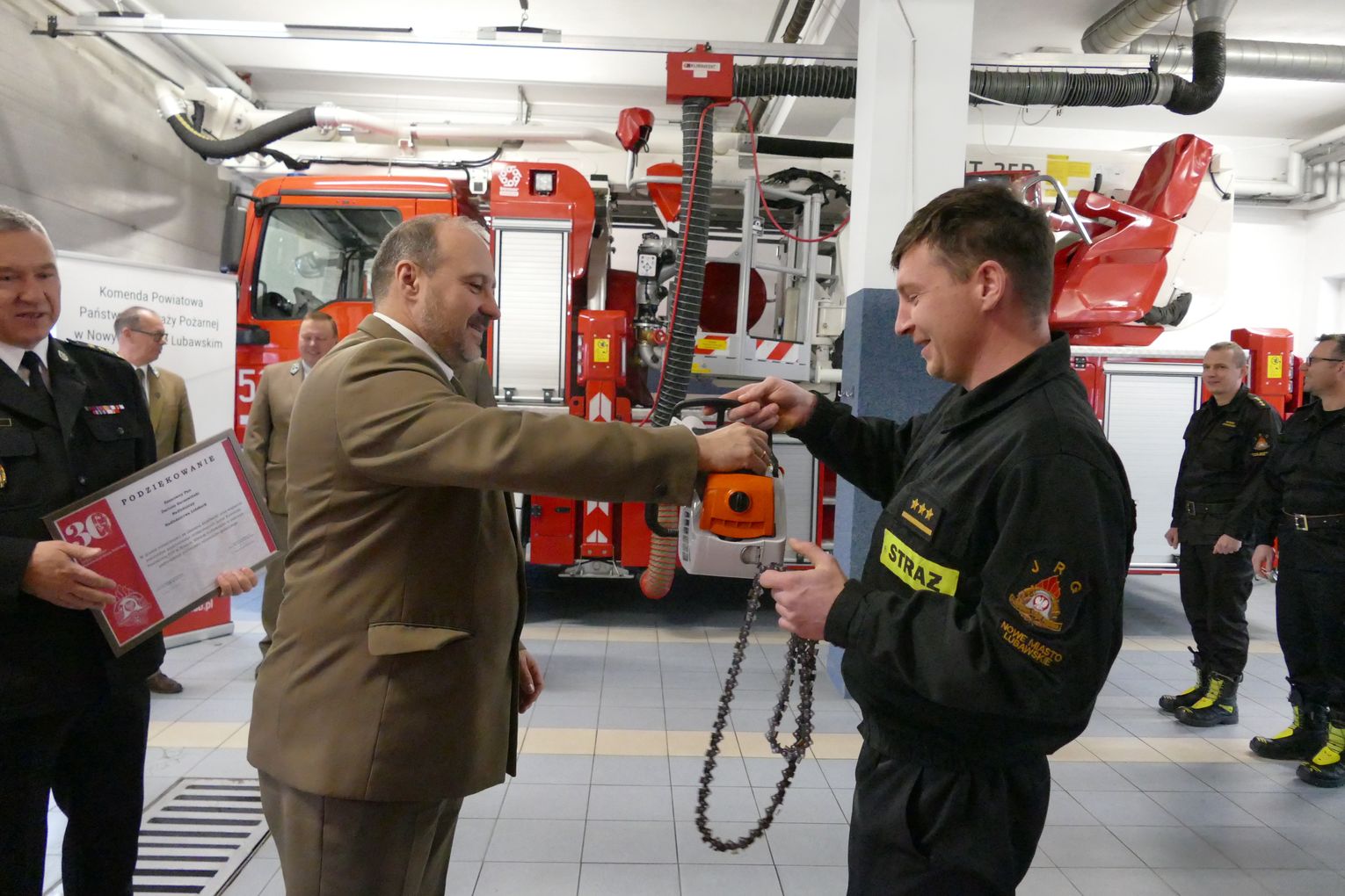 Drugi rok z rzędu nowomiejska Jednostka Ratowniczo-Gaśnicza Państwowej Straży Pożarnej otrzymała od leśników sprzęt techniczny i ratowniczy. W tym roku wartość przekazanego sprzętu wyniosła 10 700 zł. Zakupiona została m.in. piła spalinowa teleskopowa, łańcuch "Rapid Duro R" do piły ratowniczej, piła spalinowa do drewna "MS 194 T" oraz akumulator bezobsługowy, urządzenie Voip IP pozwalające na zwiększenie zasięgu radiostacji i antena z okablowaniem w dostrzegalni Lasów Państwowych w Bielicach. Wspólnego zakupu dokonały Nadleśnictwa: Brodnica, Iława, Jamy i Lidzbark.
