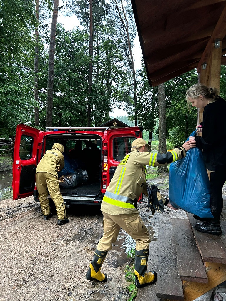 W Harcerskiej Bazie Obozowej w Gaju w związku z wydanymi przez Instytut Meteorologii i Gospodarki Wodnej ostrzeżeniami meteorologicznymi i niekorzystnymi warunkami bytowymi spowodowanymi dużą ilością wody opadowej na terenie bazy, gdzie rozstawione były namioty Komendanci Hufców podjęli decyzję o prewencyjnej ewakuacji harcerzy do miejsca doraźnego schronienia. Działania te wspierali przedstawiciele z urzędu Gmina Biskupiec, strażacy z Komenda Powiatowa Państwowej Straży Pożarnej w Nowym Mieście Lubawskim i OSP Marzęcice oraz funkcjonariusze z Komenda Powiatowa Policji w Nowym Mieście Lubawskim. Harcerze wraz z kadrą obozową (łącznie 112 osób) bezpiecznie spędzili noc w Zespole Szkół w Bielicach, gdzie mieli zapewnione ciepło, posiłki i opiekę. Szczególne podziękowania kierujemy również do zarządcy Harcerskiej Bazy Obozowej w Gaju i Pań z kuchni obozowej, które mimo trudnych warunków pogodowych przygotowały ciepłe posiłki dla harcerzy przebywających w Zespole Szkół w Bielicach.