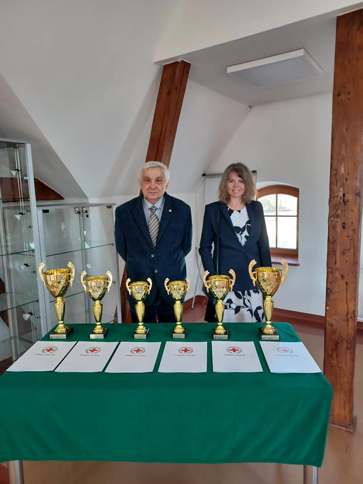 Dyplomy i puchary wręczył strażakom Prezes Warmińsko-Mazurskiego Oddziału Okręgowego PCK Pan Zbigniew Zawadzki wraz z Dyrektorem Okręgowym PCK Panią Dorotą d’Aystetten oraz Dyrektorem ZOW ZOSP RP dh. Grzegorzem Matczyńskim. Słowa uznania dla organizatorów akcji przekazał uczestniczący w uroczystości nadbryg. Tomasz Komoszyński Warmińsko-Mazurski Komendant Wojewódzki, a strażakom PSP i OSP pogratulował zajętych lokat i podziękował za wkład i zaangażowanie.