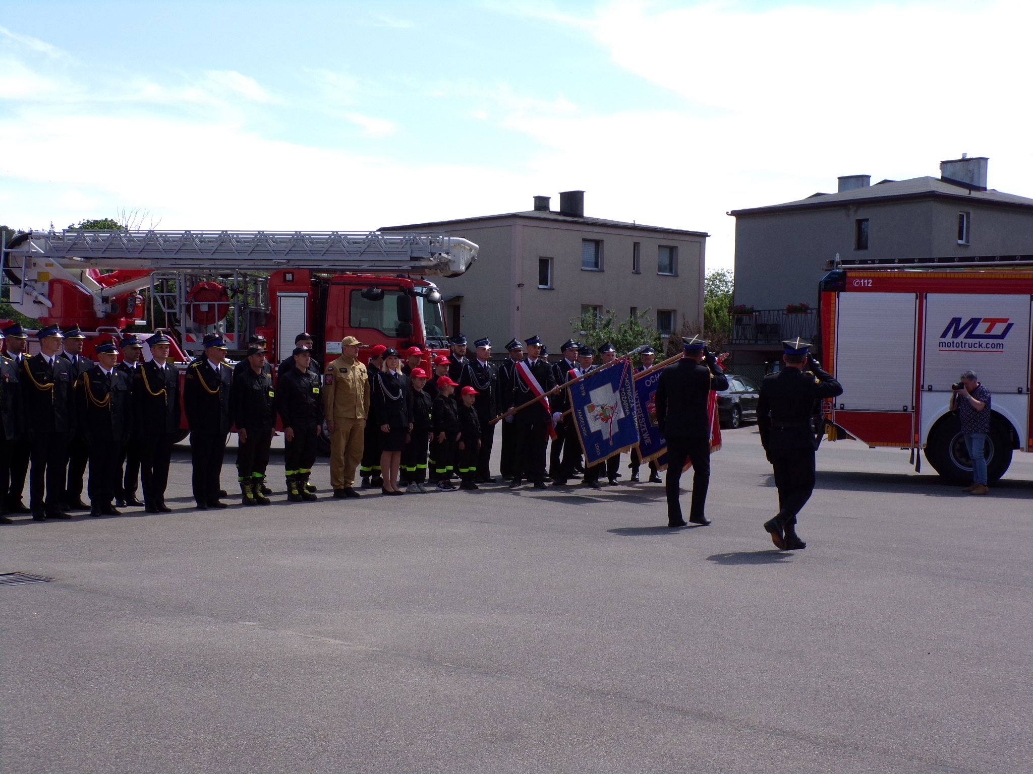 W uroczystości udział wzięli strażacy nowomiejskiej komendy, poczty sztandarowe OSP z gminy: Biskupiec, Grodziczno, Kurzętnik i Nowe Miasto Lubawskie, młodzieżowa drużyna pożarnicza działająca przy OSP Jamielnik, a także emeryci i sympatycy pożarnictwa. Wydarzenie swoją obecnością uświetnili również zaproszeni goście:
