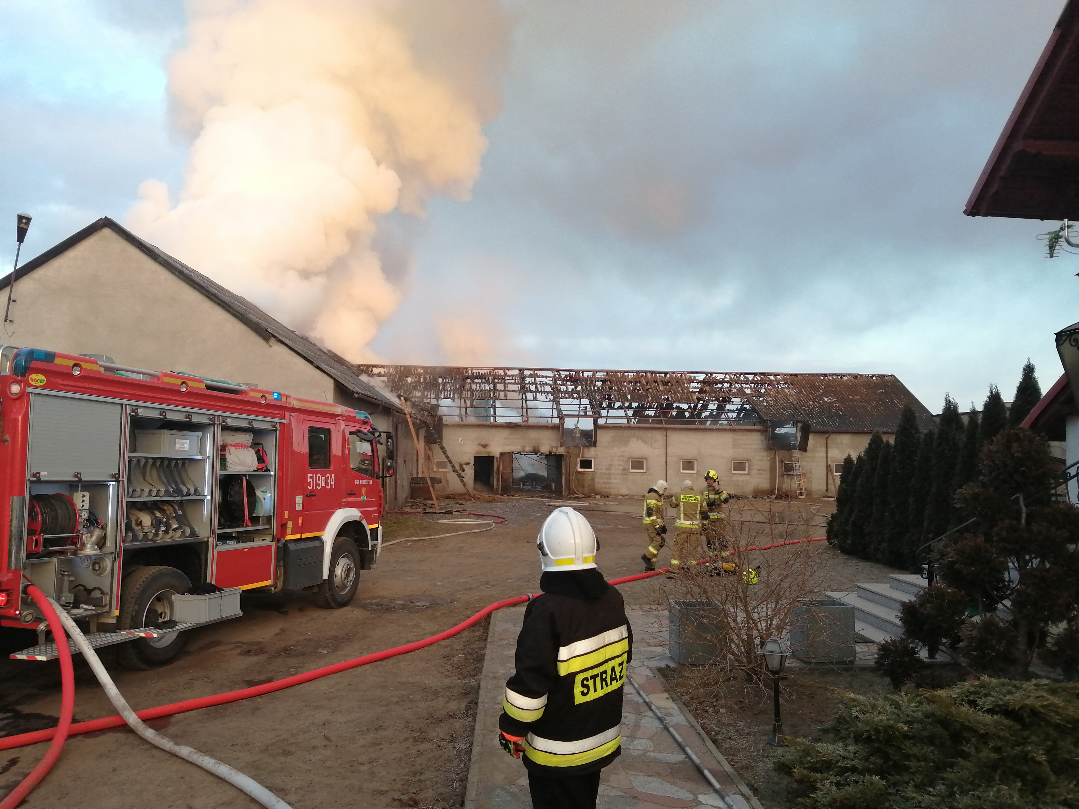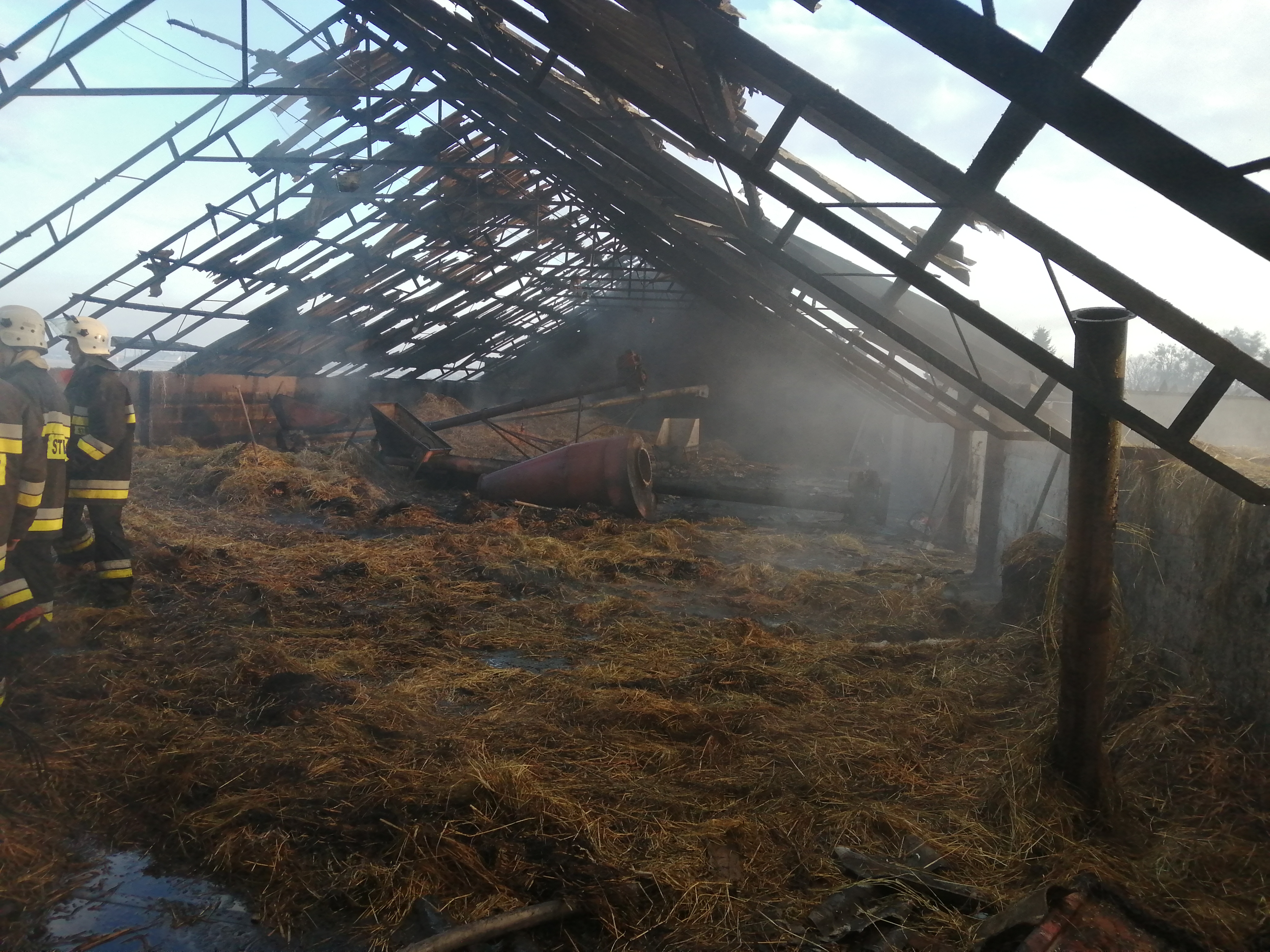 Pożar objął powierzchnię 600m2. W wyniku pożaru spaleniu uległa drewniana konstrukcja dachu kurnika wraz z pokryciem, wyposażenie hali produkcyjnej kurnika oraz pisklęta kurze w ilości 20 tyś. szt. Straty spowodowane pożarem wstępnie oszacowano na kwotę 1 mln zł. Przyczynę powstania pożaru ustala powołany zespół policjantów z KPP w NML.