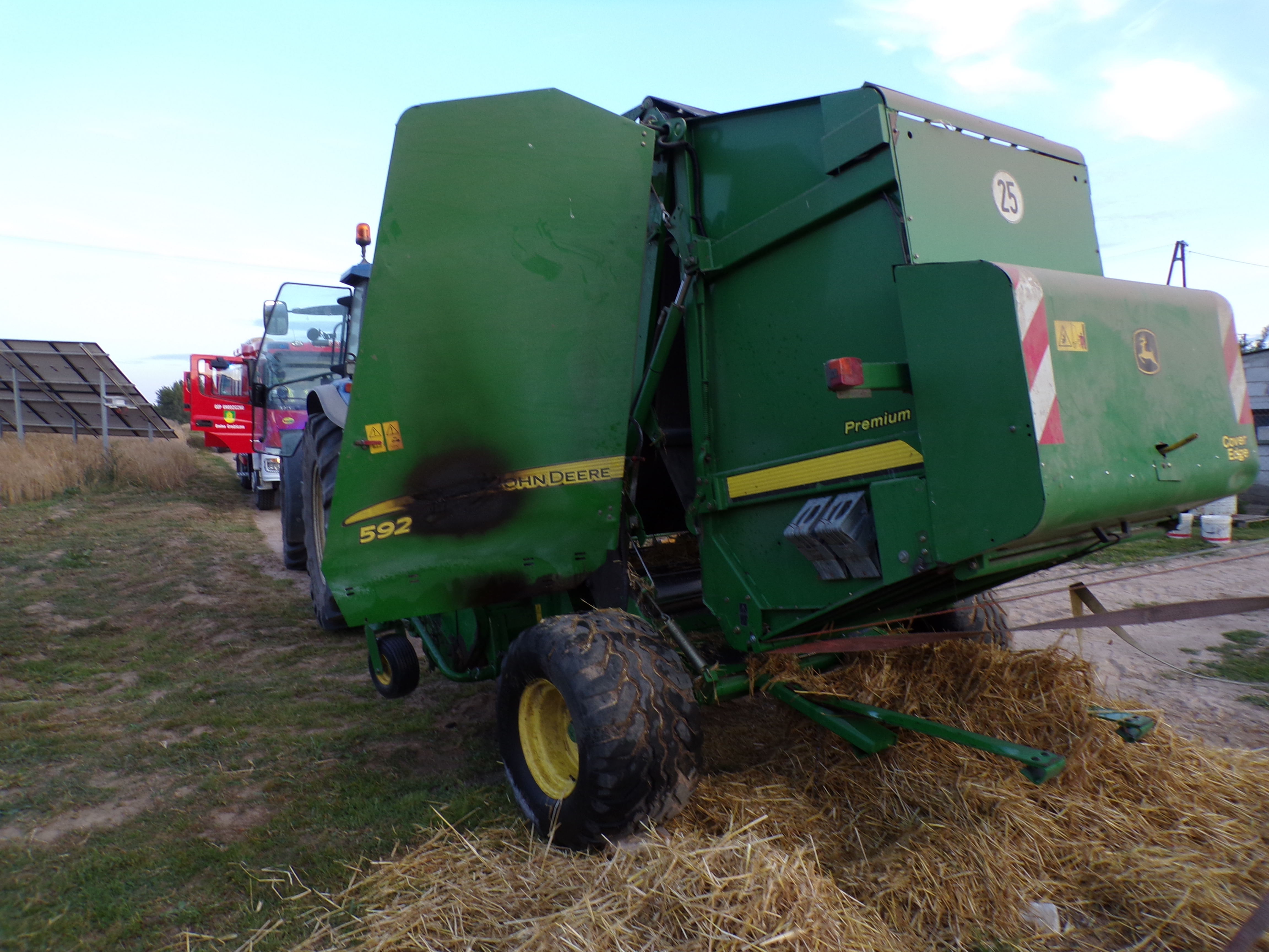 Częściowemu spaleniu uległa prasa rolująca do słomy. Straty wstępnie oszacowano na 20 tysięcy złotych.