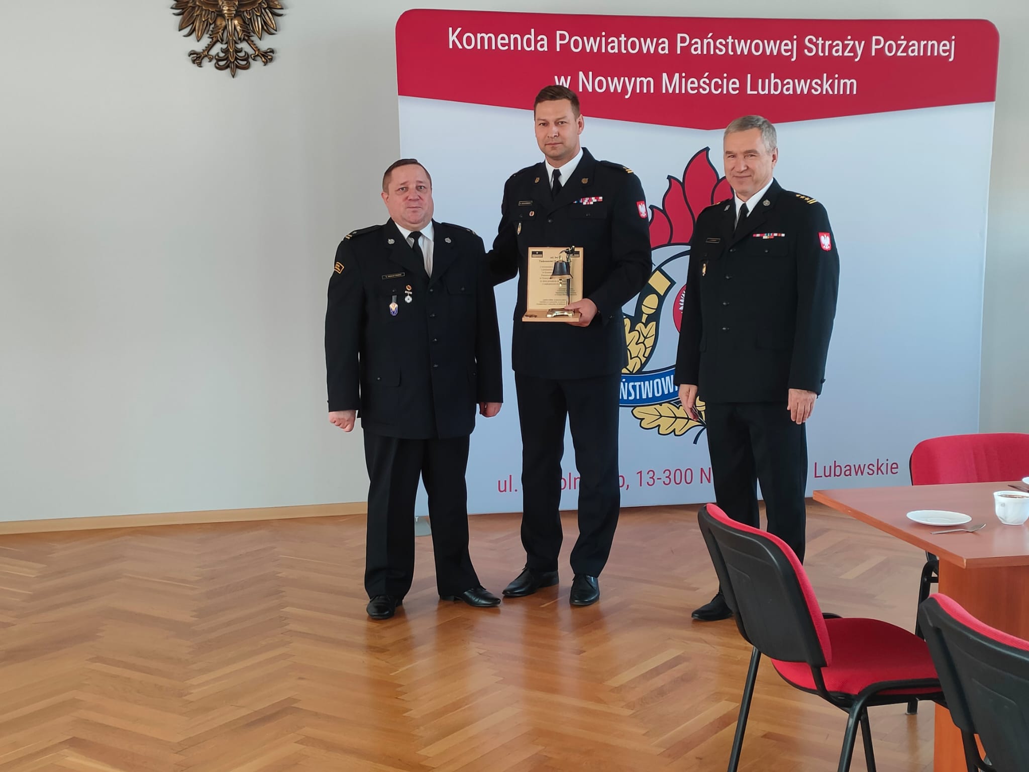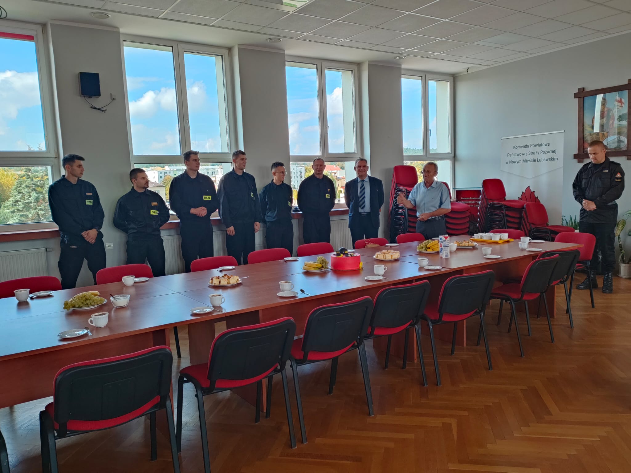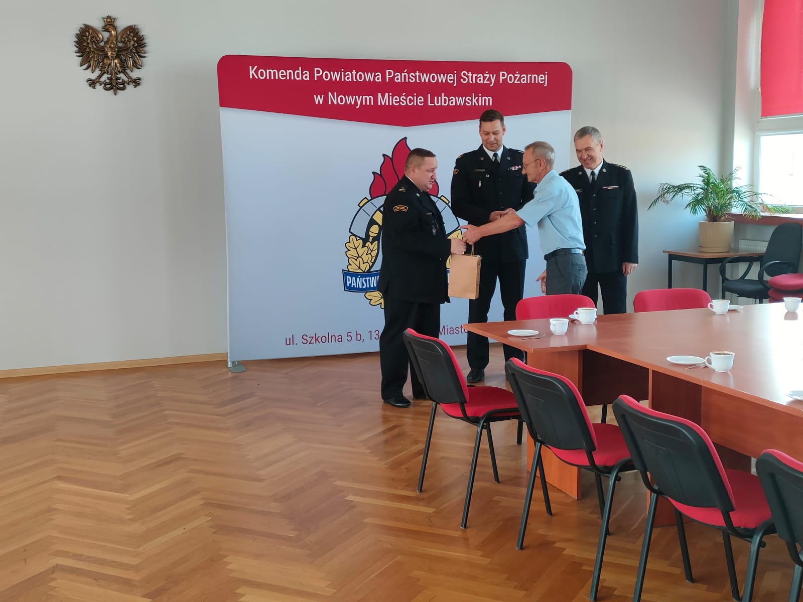 30 września 2022 roku w siedzibie Komendy Powiatowej Państwowej Straży Pożarnej w Nowym Mieście Lubawskim funkcjonariusze oraz pracownicy cywilni pożegnali odchodzącego na zaopatrzenie emerytalne funkcjonariusza - mł. bryg. Tadeusza Ruczyńskiego. Na uroczystym spotkaniu z tej okazji głos zabrał Komendant Powiatowy PSP w NML mł. bryg. Krzysztof Szałkowski, który przedstawił jego sylwetkę, przekazał funkcjonariuszowi słowa podziękowania za ponad 28 letnią służbę w ochronie przeciwpożarowej i wkład włożony w zapewnienie bezpieczeństwa mieszkańcom powiatu nowomiejskiego. Wszyscy funkcjonariusze i pracownicy cywilni złożyli mł. bryg. Tadeuszowi Ruczyńskiemu życzenia zdrowia, spokoju, spełnienia marzeń, a także realizowania się w innych sferach życia prywatnego i społecznego.
