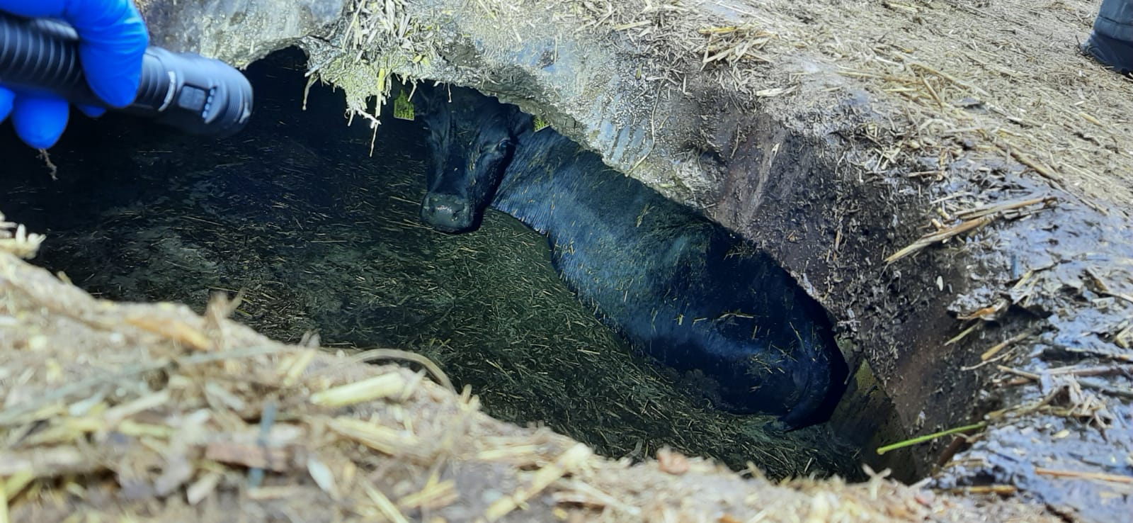 Roczne ciele wpadło do zbiornika na gnojowicę