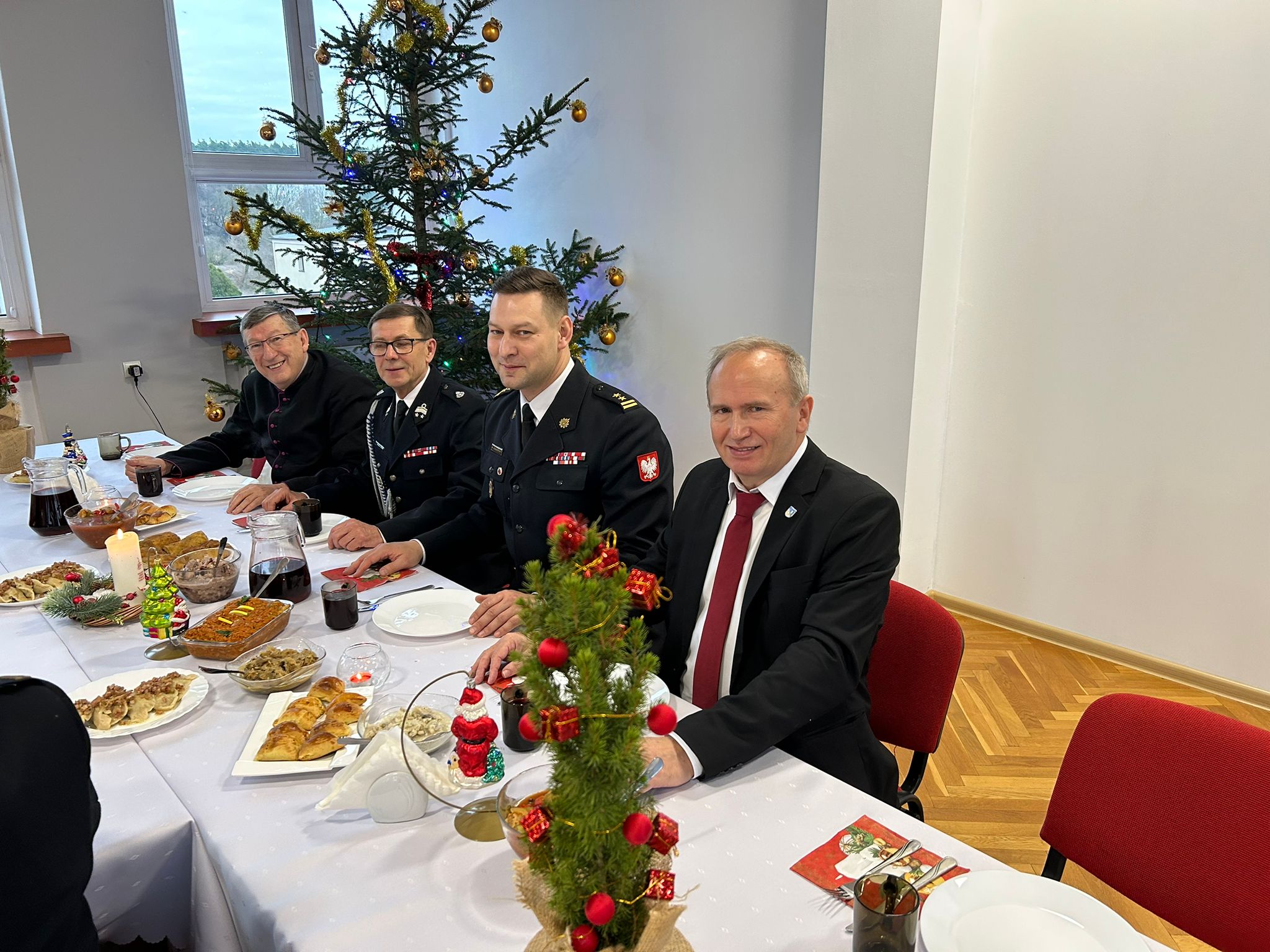 Spotkanie było również okazją do refleksji nad mijającym rokiem, podsumowania wielu przedsięwzięć i zadań zrealizowanych przez naszą jednostkę, a także do złożenia podziękowań dla wszystkich, którzy wspierają Państwową Straż Pożarną zarówno w działaniach operacyjnych, jak i w organizacji codziennych zadań.