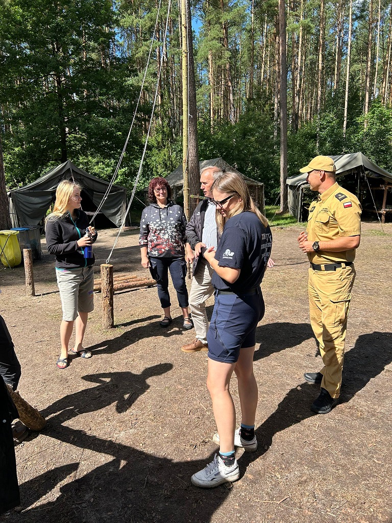 Starosta nowomiejski i kierownictwo PSP odwiedzili harcerzy Hufca ZHP Brzeg wypoczywających na obozie w Bazie Harcerskiej w Gaju
