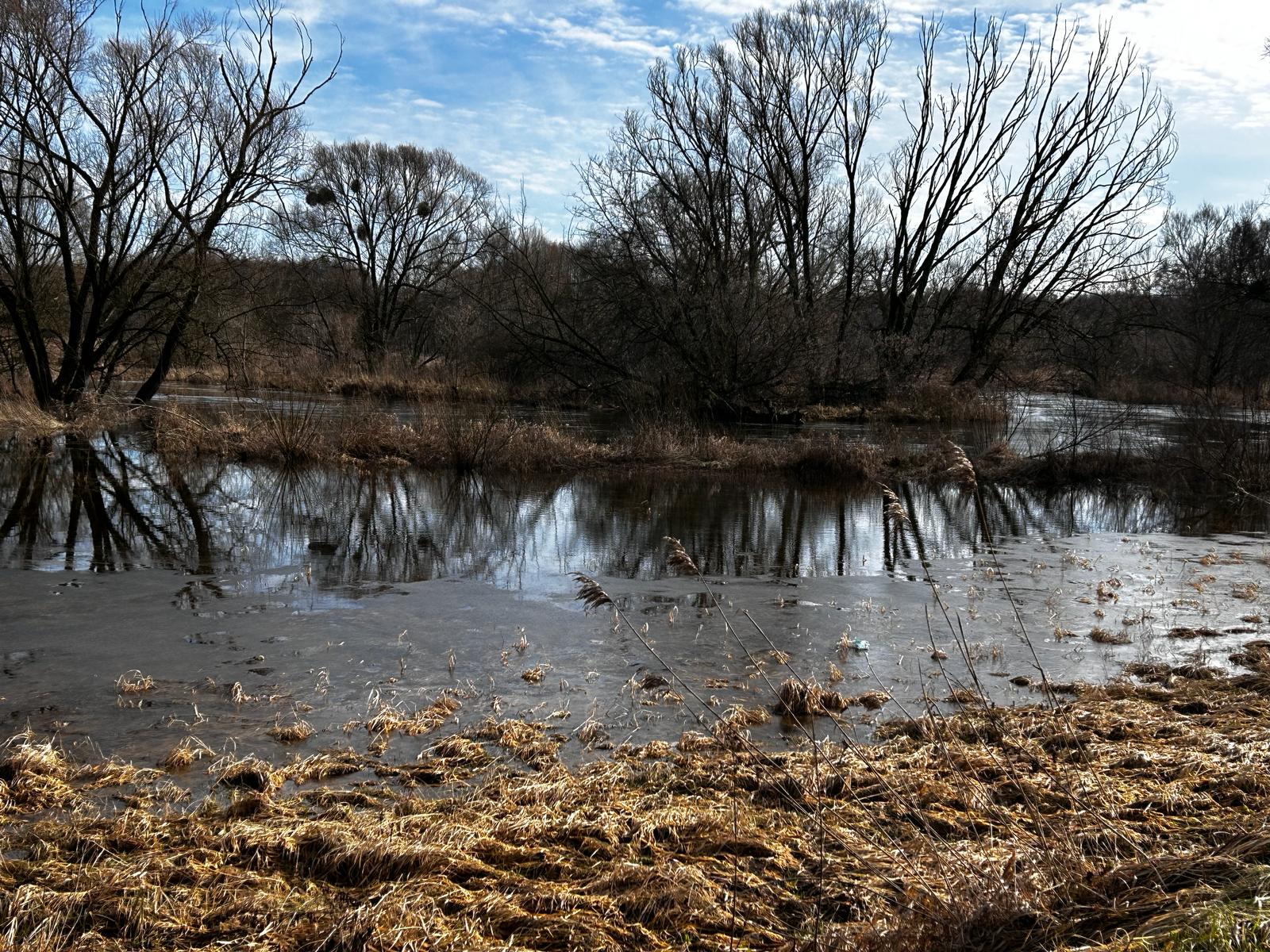 08.02.2024 r. strażacy przeprowadzili sprawdzenia sytuacji hydrologicznej na rzece Drwęcy, na odcinku Nowe Miasto Lubawskie - Kurzętnik.