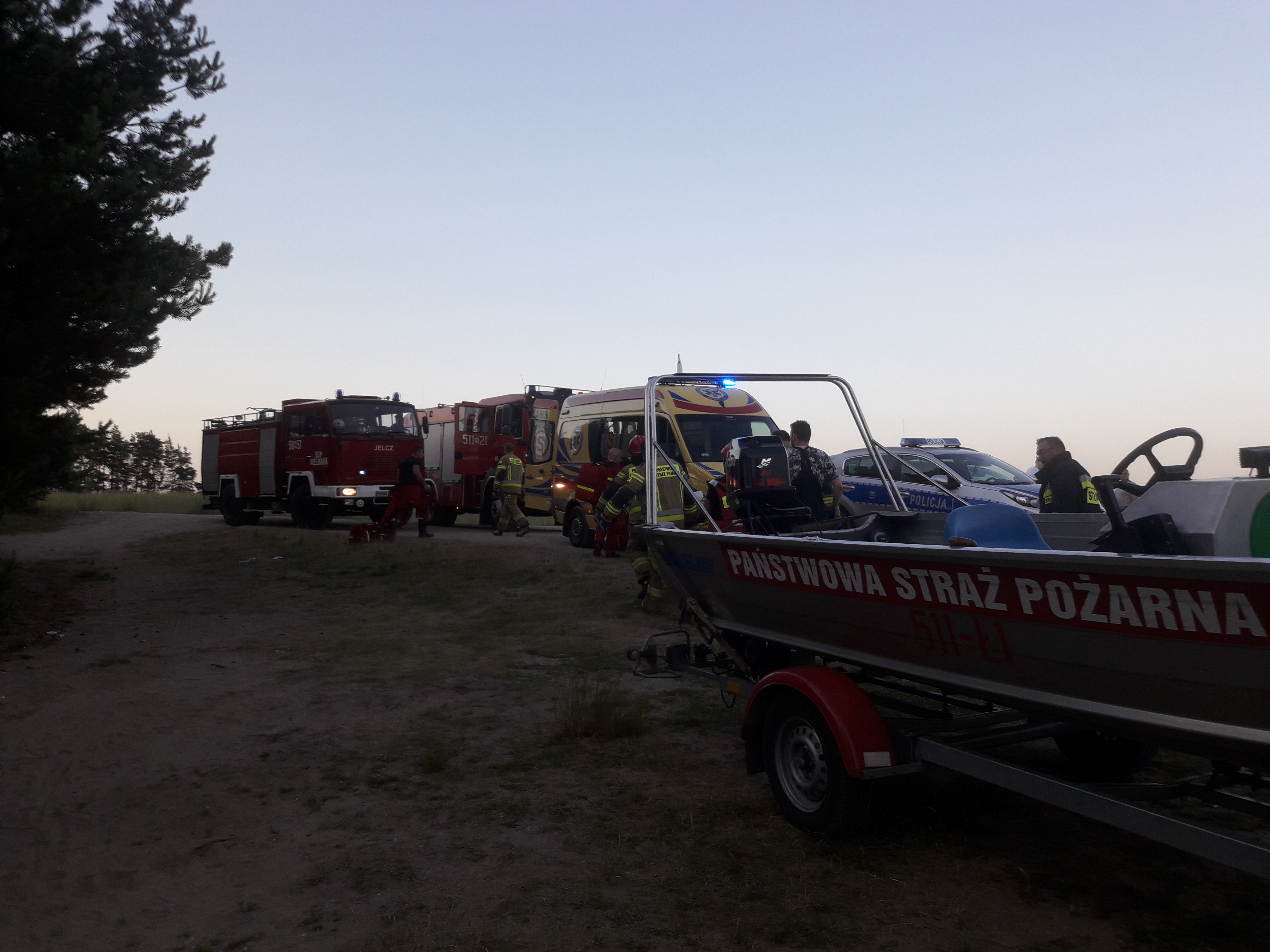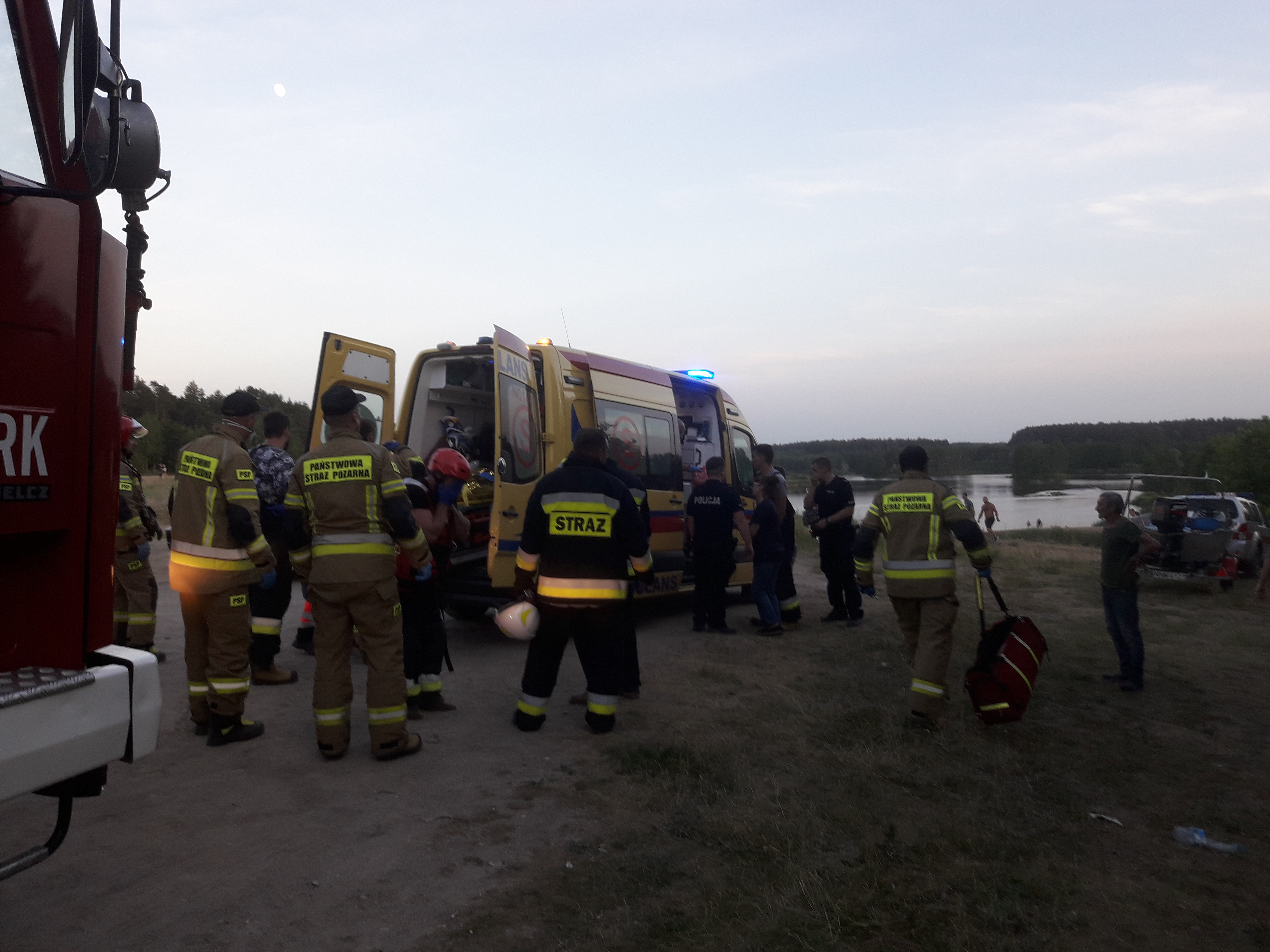 Po 6 minutach pierwsze dwa zastępy OSP Nielbark znajdowały się na miejscu zdarzenia. W chwili dojazdu strażaków mężczyzna znajdował się na plaży, z wody został wyciągnięty przez osoby postronne przebywające nad jeziorem. Przybili strażacy ustalili, że poszkodowany jest nieprzytomny, bez oddechu i krążenia. Bez zwłoki strażacy przystąpili do resuscytacji krążeniowo-oddechowej oraz podłączono mężczyźnie automatyczny defibrylator AED. Po trzech wyładowaniach defibrylatora poszkodowanemu powróciło krążenie, serce zaczęło bić, pojawił się płytki oddech. Do przyjazdu zespołu ratownictwa medycznego nieprzerwanie strażacy prowadzili resuscytację krążeniowo-oddechową. Po przyjeździe zespołu ratownictwa medycznego poszkodowany został przebadany i przetransportowany na noszach do karetki pogotowia, gdzie podłączono go do specjalistycznej aparatury medycznej. Zaopatrzonego pod względem medycznym mężczyznę karetką przewieziono do szpitala powiatowego w Brodnicy. Akacja ratownicza trwała 1.07 godz. Udział w działaniach ratowniczych wzięły trzy zastępy straży pożarnej, patrol policji i zespół ratownictwa medycznego.