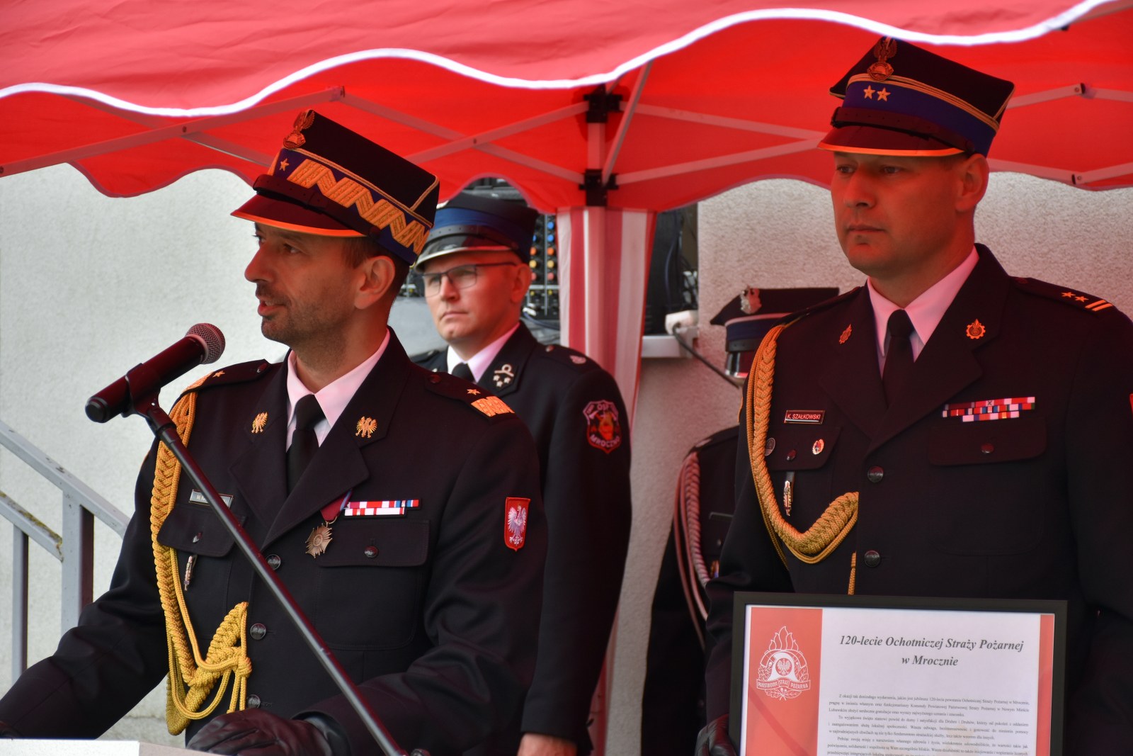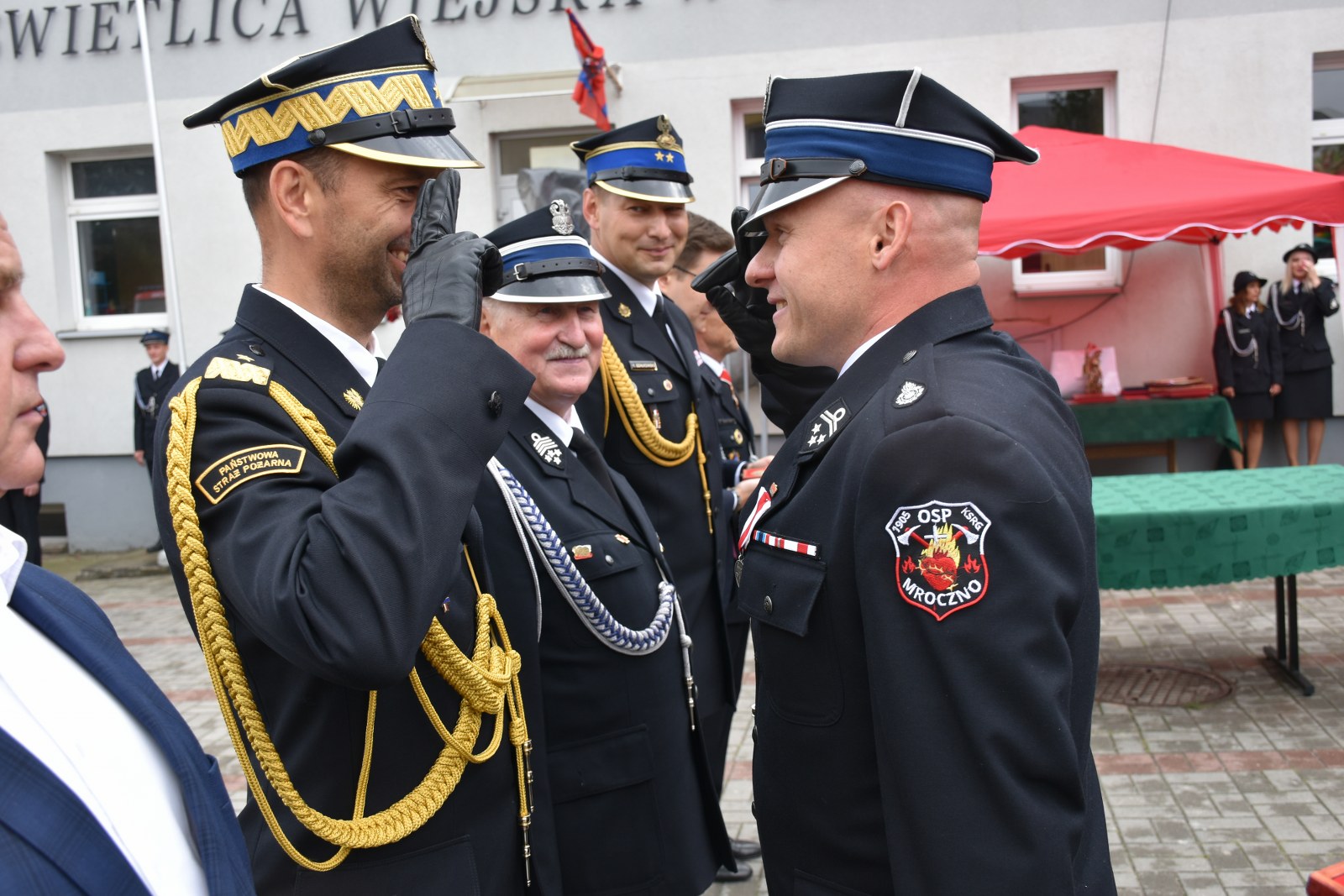 Głos zabrali również zaproszeni goście, składając gratulacje i wyrazy uznania dla druhów z OSP Mroczno. Szczególne słowa uznania wyraził Komendant Wojewódzki PSP - nadbryg. Michał Kamieniecki, życząc druhom bezpiecznej służby i tylu powrotów, ilu wyjazdów, zaznaczając wielopokoleniowość OSP Mroczno.