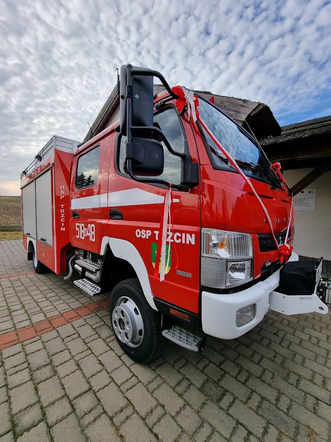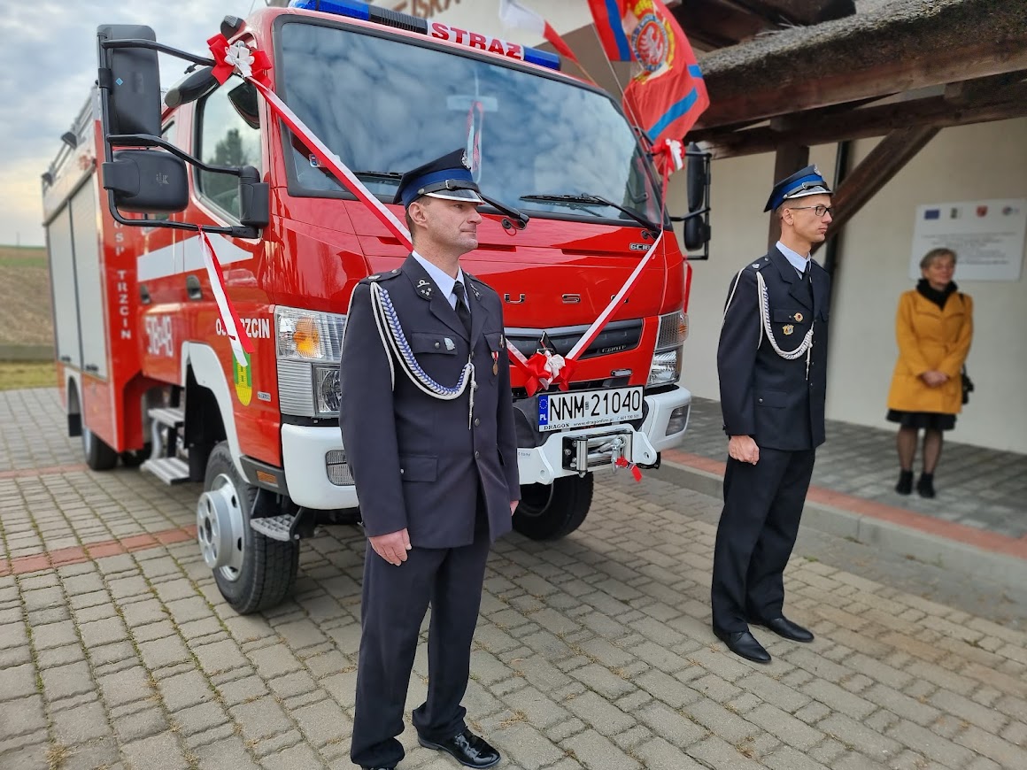 26 października 2021 roku na placu przed strażnicą w Trzcinie odbyła się uroczystość poświęcenia i przekazania lekkiego samochodu ratowniczo – gaśniczego marki FUSO dla Ochotniczej Straży Pożarnej Trzcin. Wydarzenie rozpoczęło się zbiórką pododdziałów i pocztów sztandarowych z jednostek OSP i złożeniem przez dowódcę uroczystości meldunku nadbrygadierowi Tomaszowi Komoszyńskiemu Warmińsko-Mazurskiemu Komendantowi Wojewódzkiemu PSP.