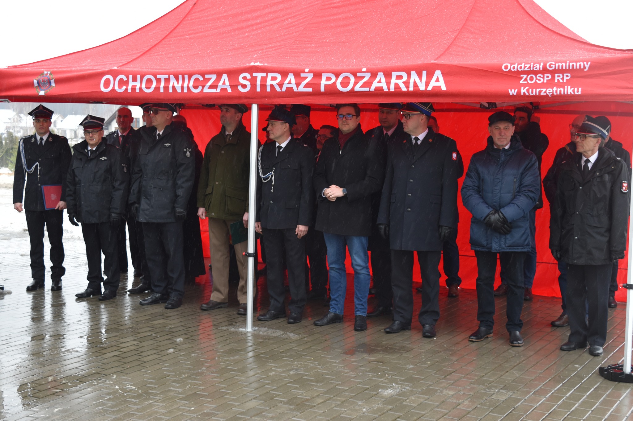 Meldunek o rozpoczęciu uroczystości odebrał st. bryg. Tomasz Ostrowski Zastępca Warmińsko-Mazurskiego Komendanta Wojewódzkiego. Następnie odśpiewano hymn Rzeczpospolitej Polskiej. Po przywitaniu zaproszonych gości przez włodarza gminy Kurzętnik Pana Piotra Piątka nastąpiło poświęcenie pojazdu przez ks. Bernarda Zakrzewskiego i ks. Andrzeja Ziegerta.