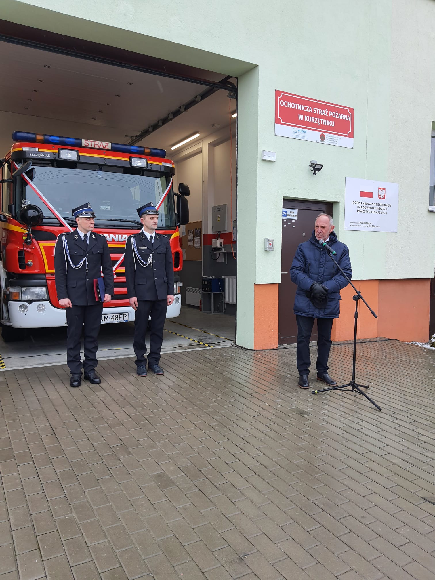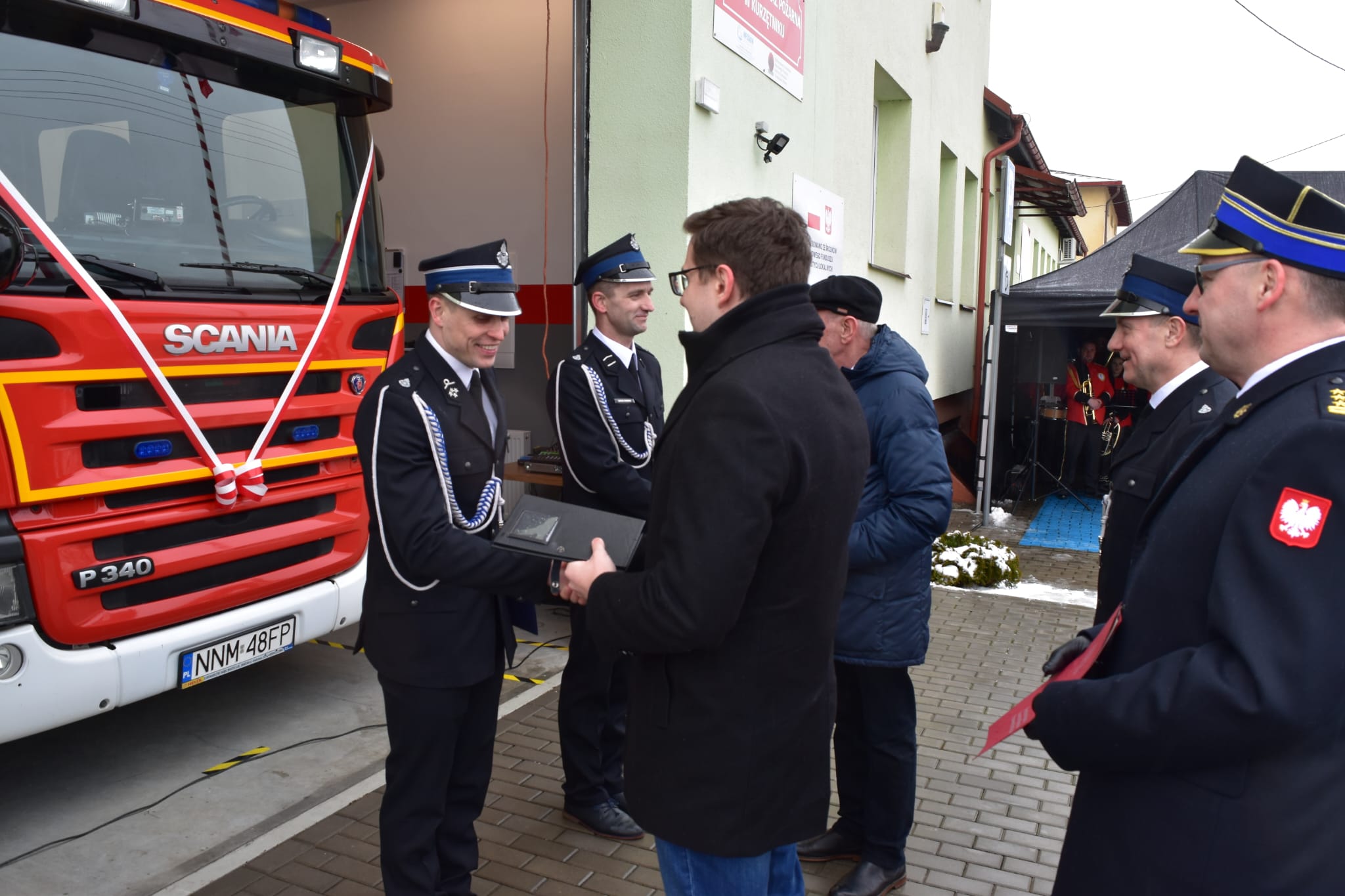 Uroczystego przekazania pojazdu dokonali Pan Zbigniew Babalski Poseł na Sejm RP, Pan Robert Gontarz Poseł na Sejm RP wraz z st. bryg. Tomaszem Ostrowskim i Panem Piotrem Piątkiem wręczając akt nadania oraz kluczyki do pojazdu Przemysławowi Kierzenkowskiemu Prezesowi OSP Kurzętnik.