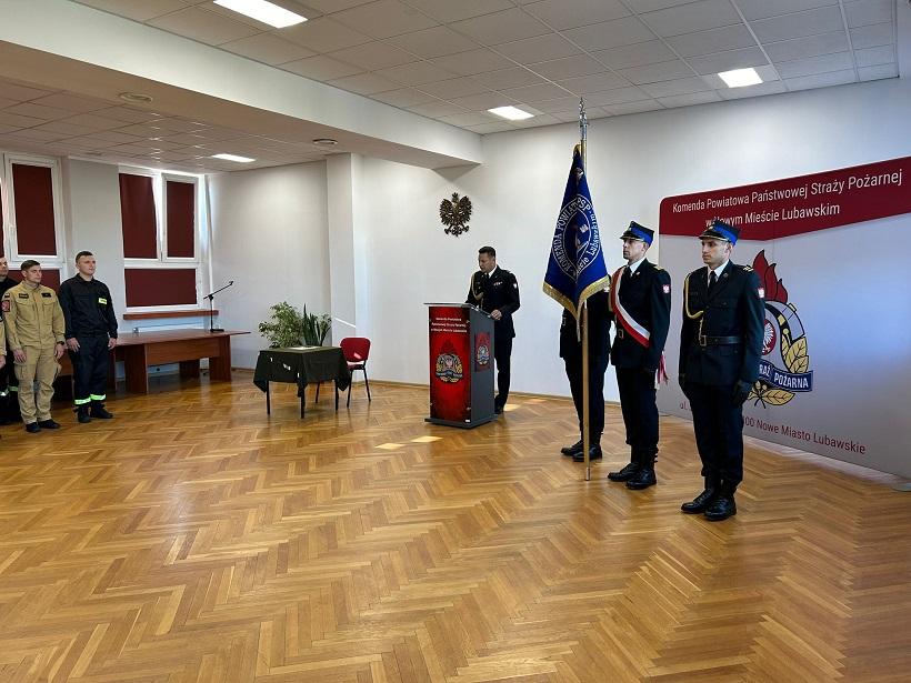 Uroczystość ślubowania jest jednym z najważniejszych momentów w służbie każdego strażaka, który symbolizuje gotowość do służby, ratowania życia, zdrowia i mienia obywateli. W uroczystości ślubowania str. Markowi Wiśniewskiemu towarzyszył Komendant Powiatowy PSP w Nowym Mieście Lubawskim bryg. Krzysztof Szałkowski, funkcjonariusze i pracownicy cywilni komendy oraz rodzina ślubującego.