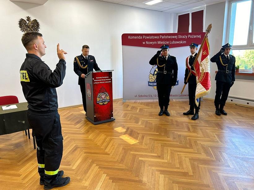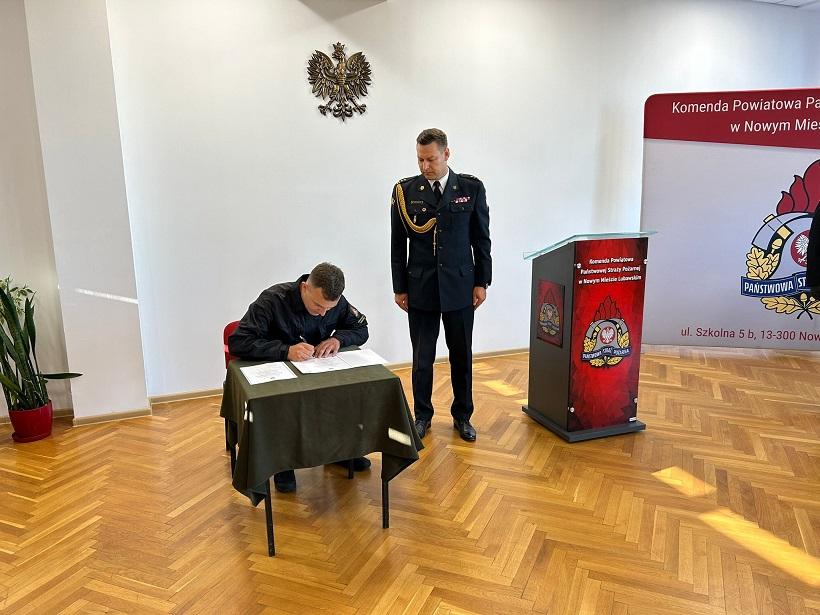 Uroczyste ślubowanie strażaka nowomiejskiej komendy