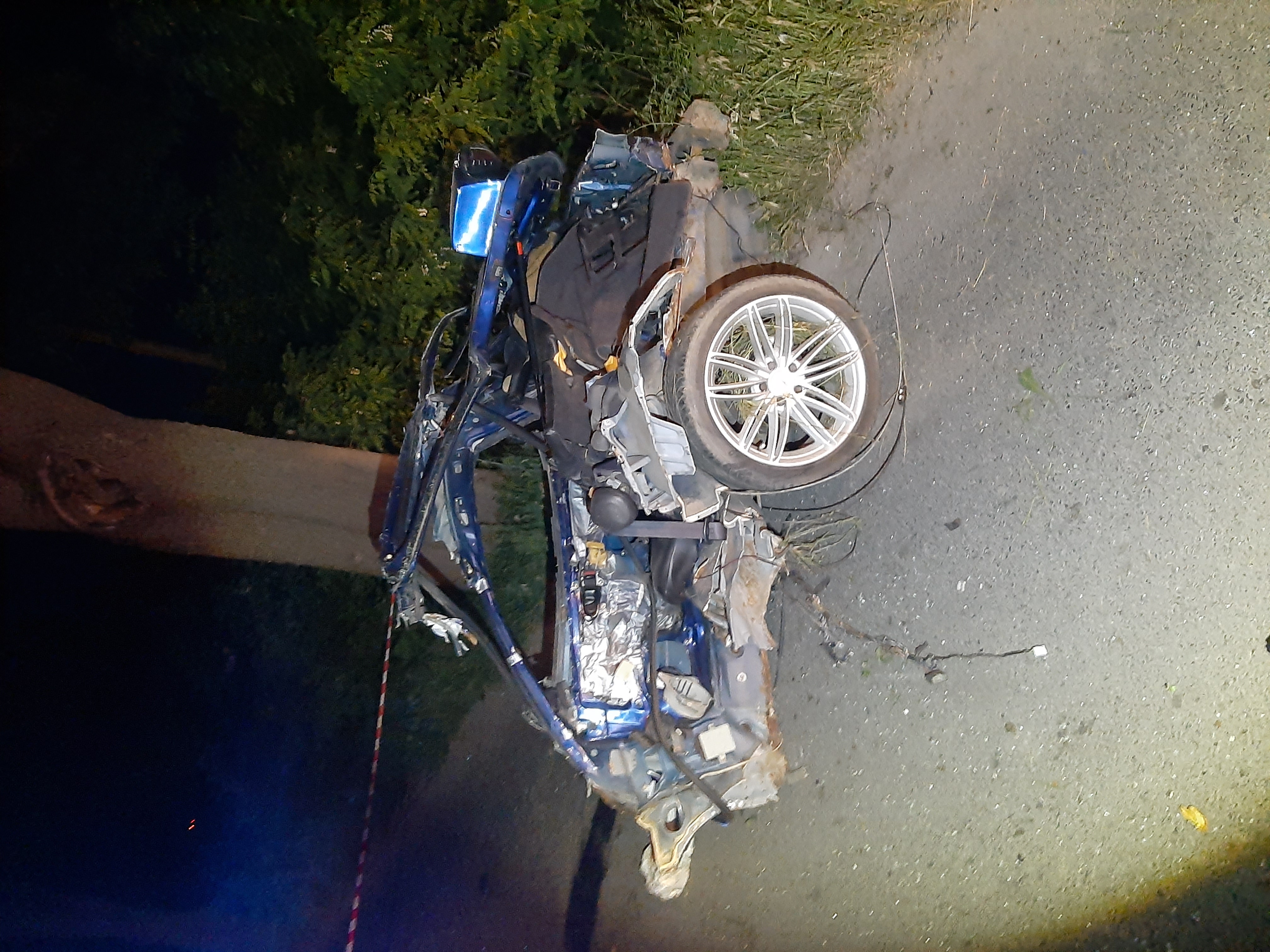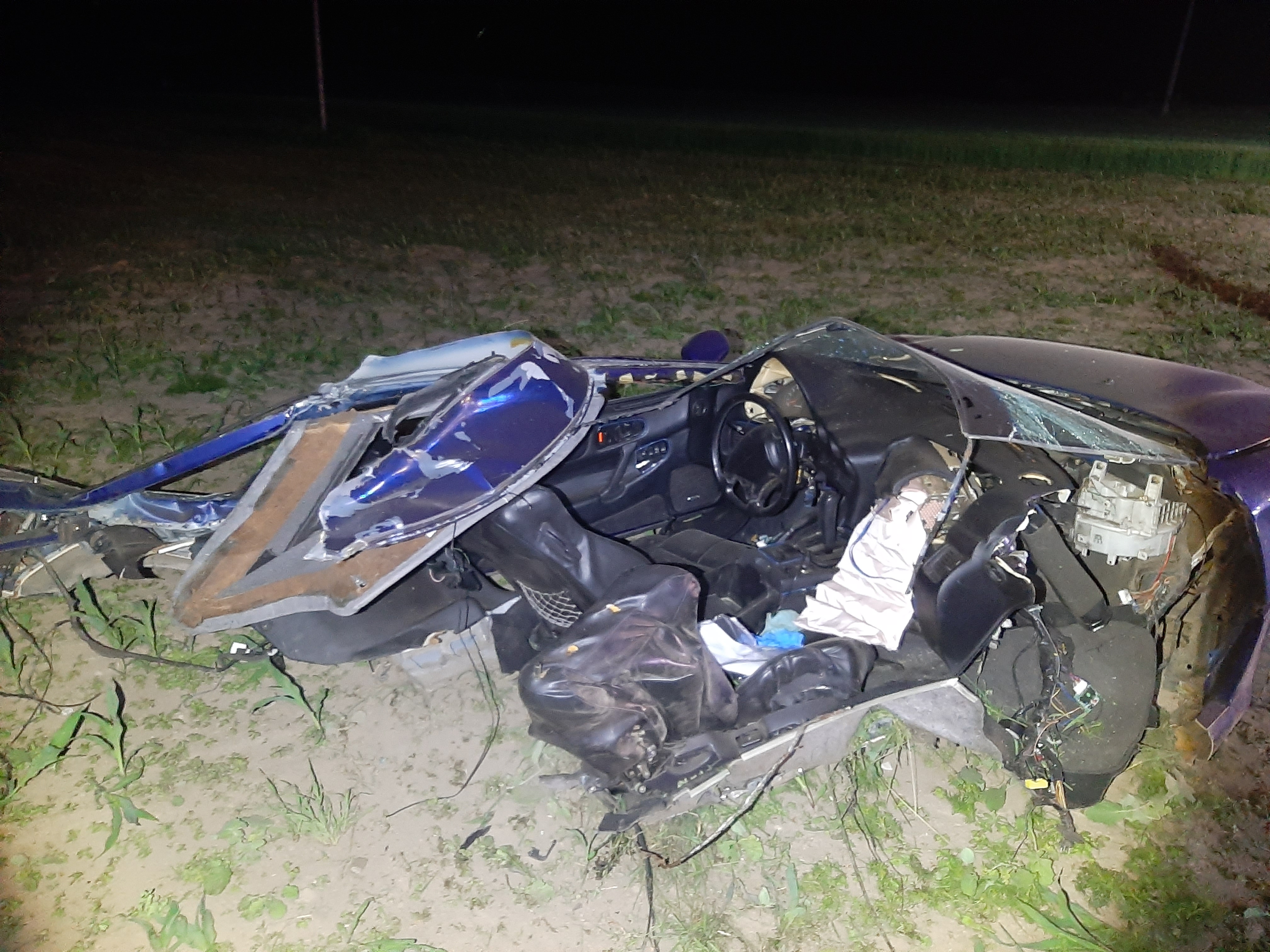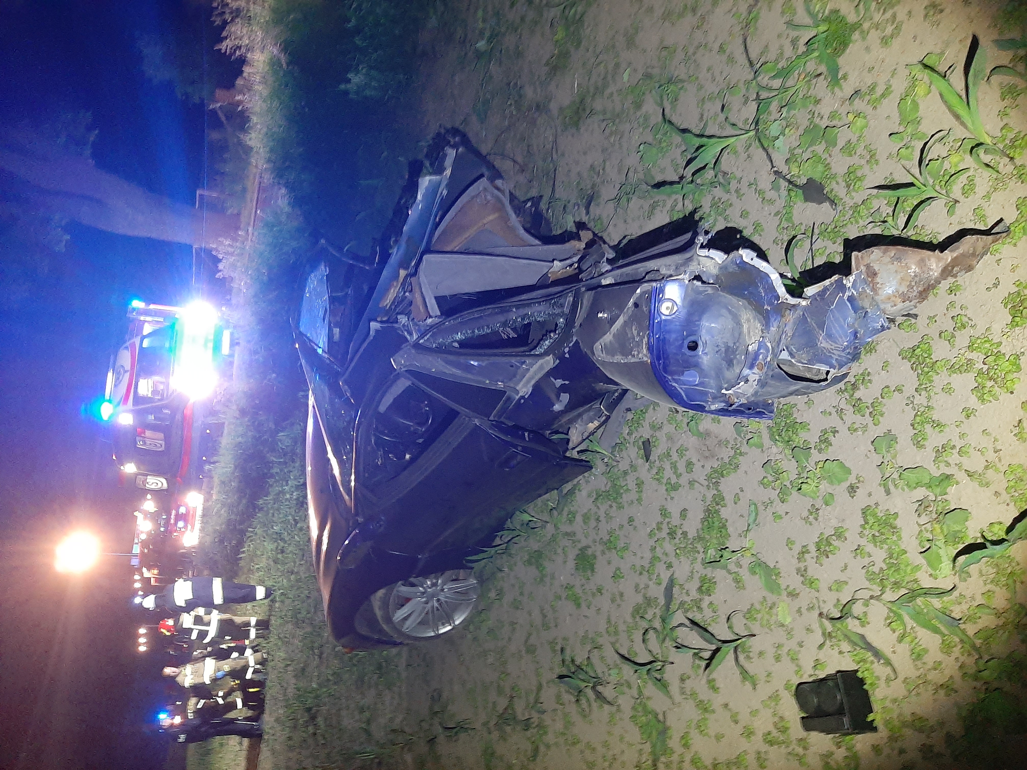 11 czerwca o godzinie 22.57 , dyżurny stanowiska kierowania w Komendzie Powiatowej PSP w Nowym Mieście Lubawskim otrzymał informację o wypadku komunikacyjnym w miejscowości Mroczno, gm. Grodziczno, z udziałem jednego samochodu osobowego. Na miejsce zdarzenia natychmiast zostały zadysponowane dwa zastępy straży pożarnej z Jednostki Ratowniczo-Gaśniczej w Nowym Mieście Lubawskim oraz dwa zastępu z jednostki z Ochotniczej Straży Pożarnej w Mrocznie. Pierwszy zastęp straży pożarnej OSP Mroczno przybył na miejsce zdarzenia już po 7 minutach. W trakcie prowadzonego rozpoznania kierujący działaniami ustalił, że samochód osobowy poruszając się po drodze powiatowej w miejscowości Mroczno z nieznanych przyczyn uderzył w przydrożne drzewo. W wyniku uderzenia samochód rozpadł się na dwie części, z czego jedna część pozostała na drodze powiatowej, druga znajduje się około 30 metrów dalej w polu. Pojazdem podróżowała jedna osoba - mężczyzna, który żyje i doznał ogólnych obrażeń. Po udzieleniu przez strażaków poszkodowanemu kwalifikowanej pierwszej pomocy, opatrzeniu ran został on przekazany zespołowi ratownictwa medycznego, który przetransportował poszkodowanego do szpitala w Nowym Mieście Lubawskim. Działania straży pożarnej polegały na: udzieleniu poszkodowanemu kwalifikowanej pomocy medycznej, opatrzeniu ran, zabezpieczeniu miejsca zdarzenia, przeszukaniu pobliskiego terenu, usunięciu wraku samochodu z jezdni. Działania ratownicze straży pożarnej trwały 2 godz. 07 minut. Brało w nich udział pięć zastępów straży pożarnej, w tym trzy zastępy z JRG PSP NML i dwa zastępu z OSP Mroczno. W działaniach brały również udział dwa radiowozy policji i jeden zespół ratownictwa medycznego.