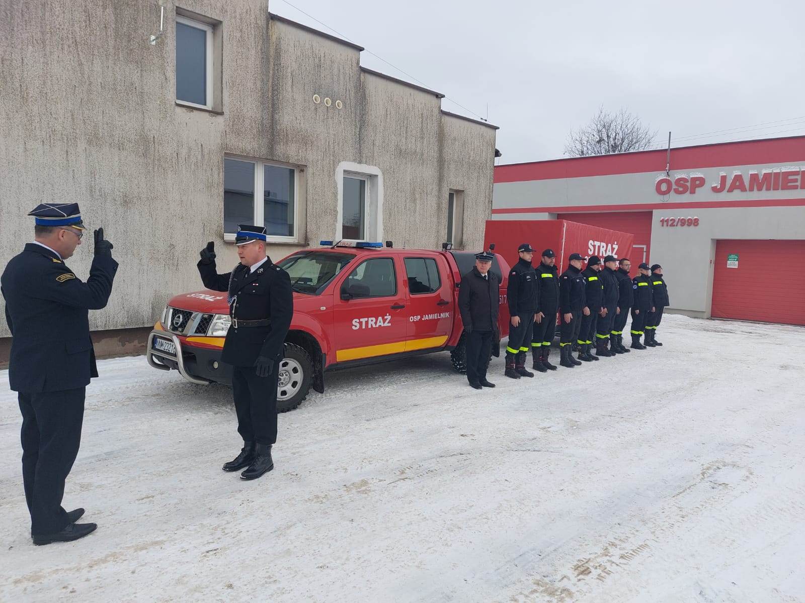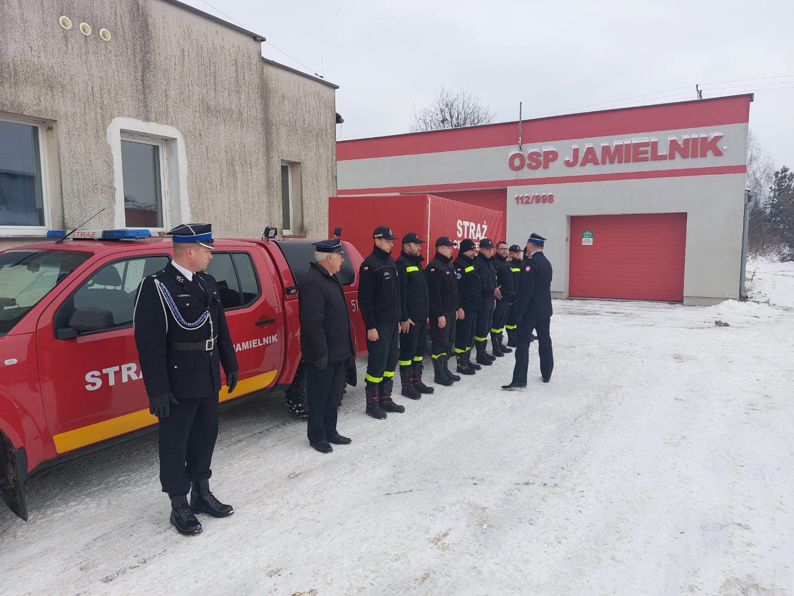Kolejną wizytowaną jednostką była OSP Jamielnik w gminie Nowe Miasto Lubawskie. Wizytujących przywitał Prezes tej jednostki dh Łukasz Kamiński wraz z Komendantem Gminnych ZOSP dh Januszem Łupaczewskim.