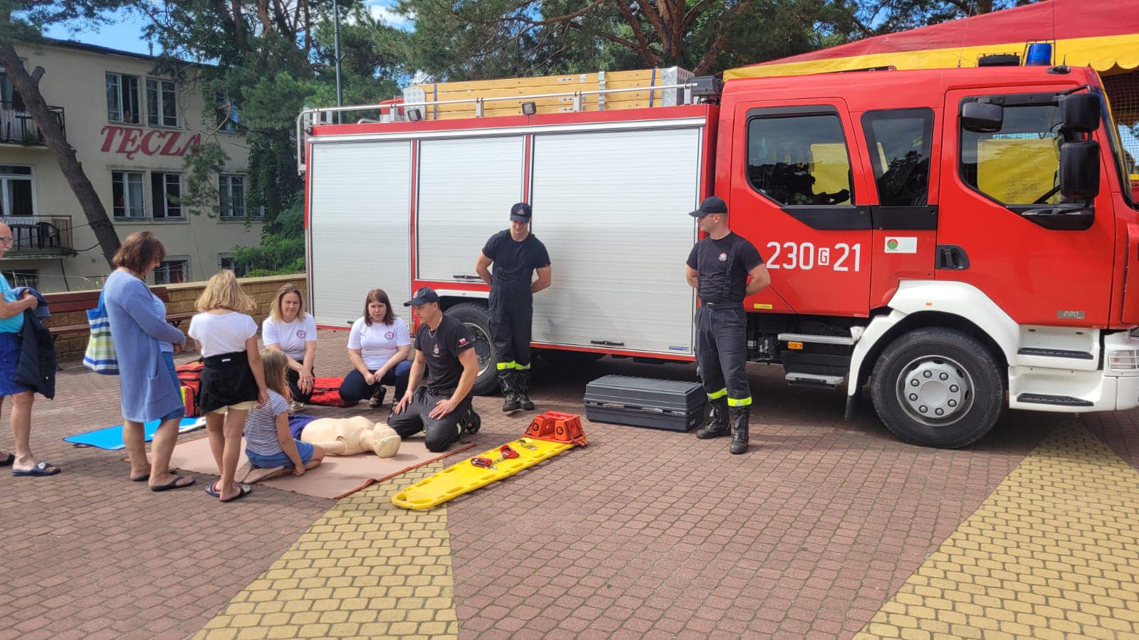 - Strażacy prezentowali jak udzielać pierwszej pomocy w różnych sytuacjach, takich jak zadławienie, krwawienie czy utrata przytomności. Strażacy omawiali z dziećmi i ich rodzicami ważne zagadnienia, takie jak działanie w przypadku pożaru czy prawidłowego korzystania z numeru alarmowego.