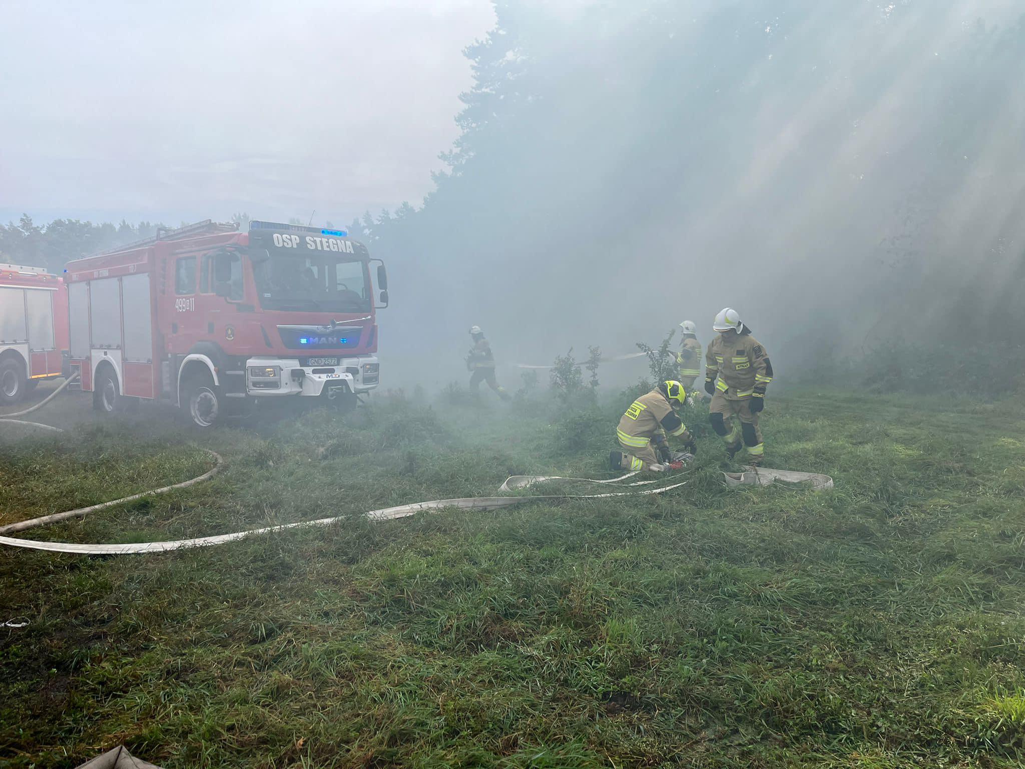 „11 września 2024 roku około godziny 10:00, na skutek nieostrożności osób dorosłych (pozostawienie niedopałka papierosa) przy uprawianiu turystyki i rekreacji, dochodzi do pożaru poszycia leśnego. Dym wypełnia las, pobliski parking leśny oraz drogi leśne. Po upływie około 20 minut od powstania zdarzenia, informacja o pożarze w Kątach Rybackich, Leśniczówka Kąty Rybackie, wpływa telefonicznie do Stanowiska Kierowania KP PSP w Nowym Dworze Gdańskim.”
