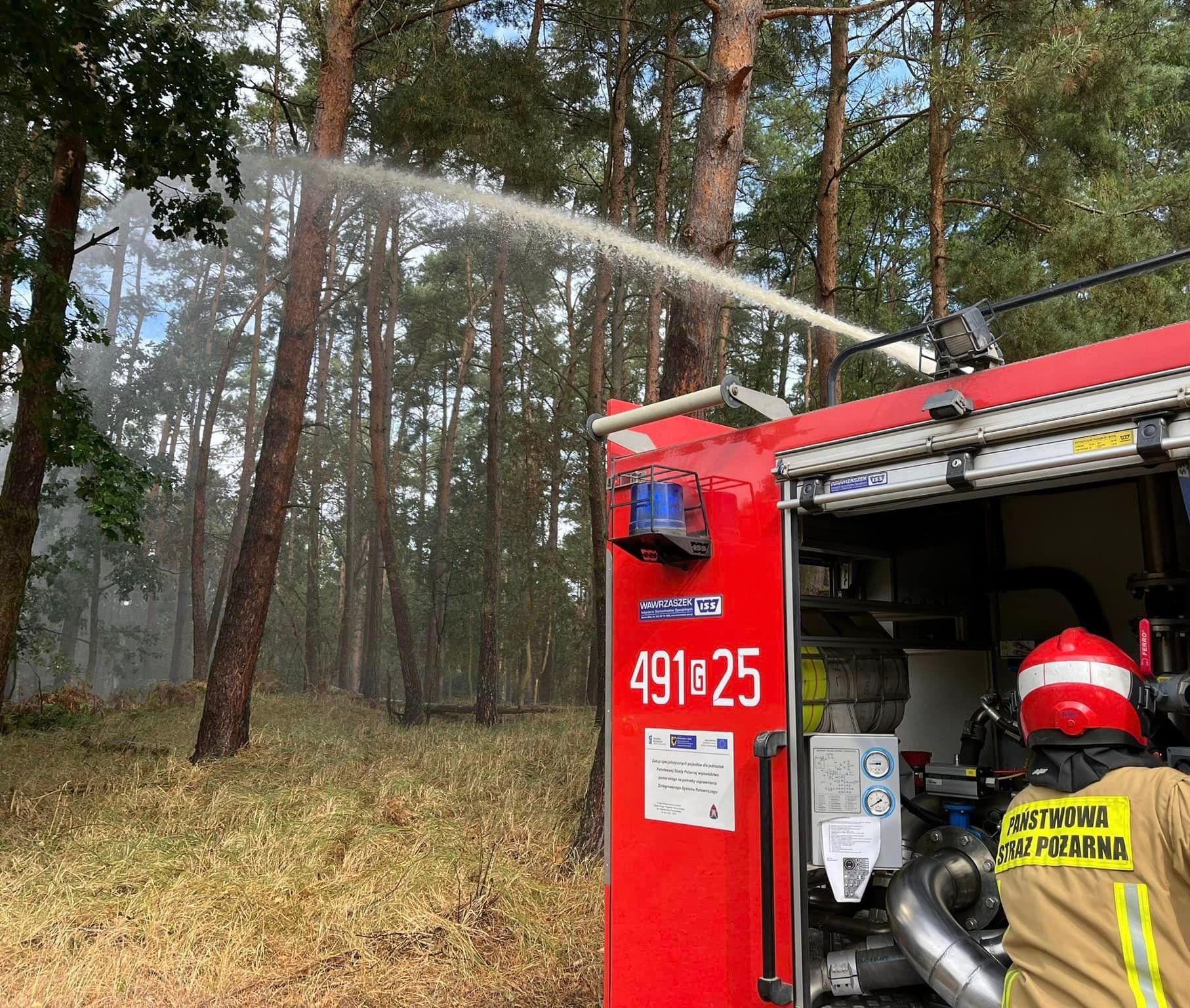 Ćwiczenia pn. Akcja gaśnicza podczas palącego się poszycia leśnego na terenie Leśnictwa Kąty Rybackie