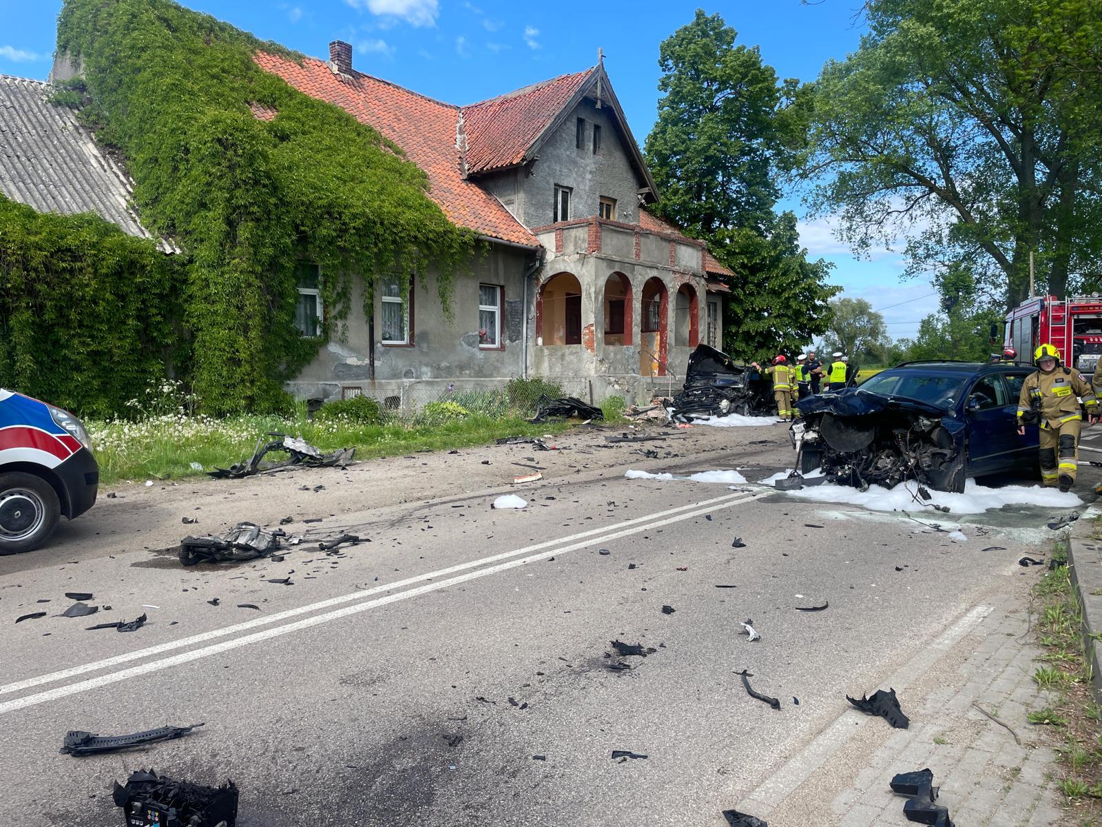 Czołowe zderzenie dwóch samochodów osobowych