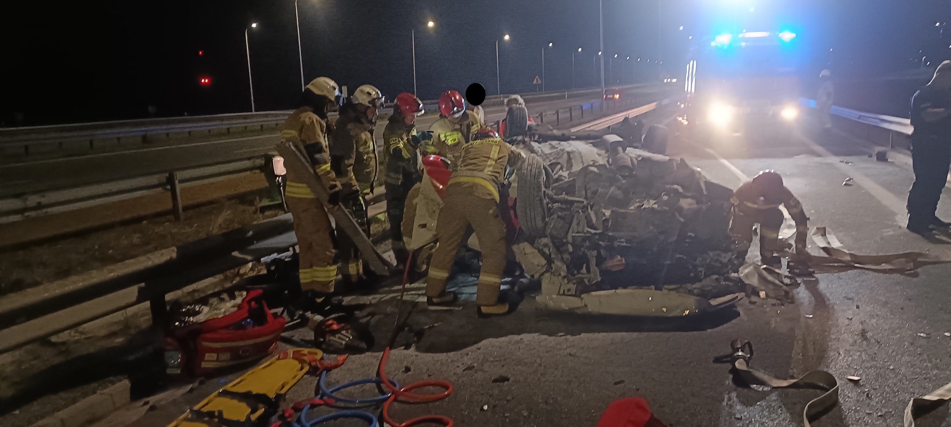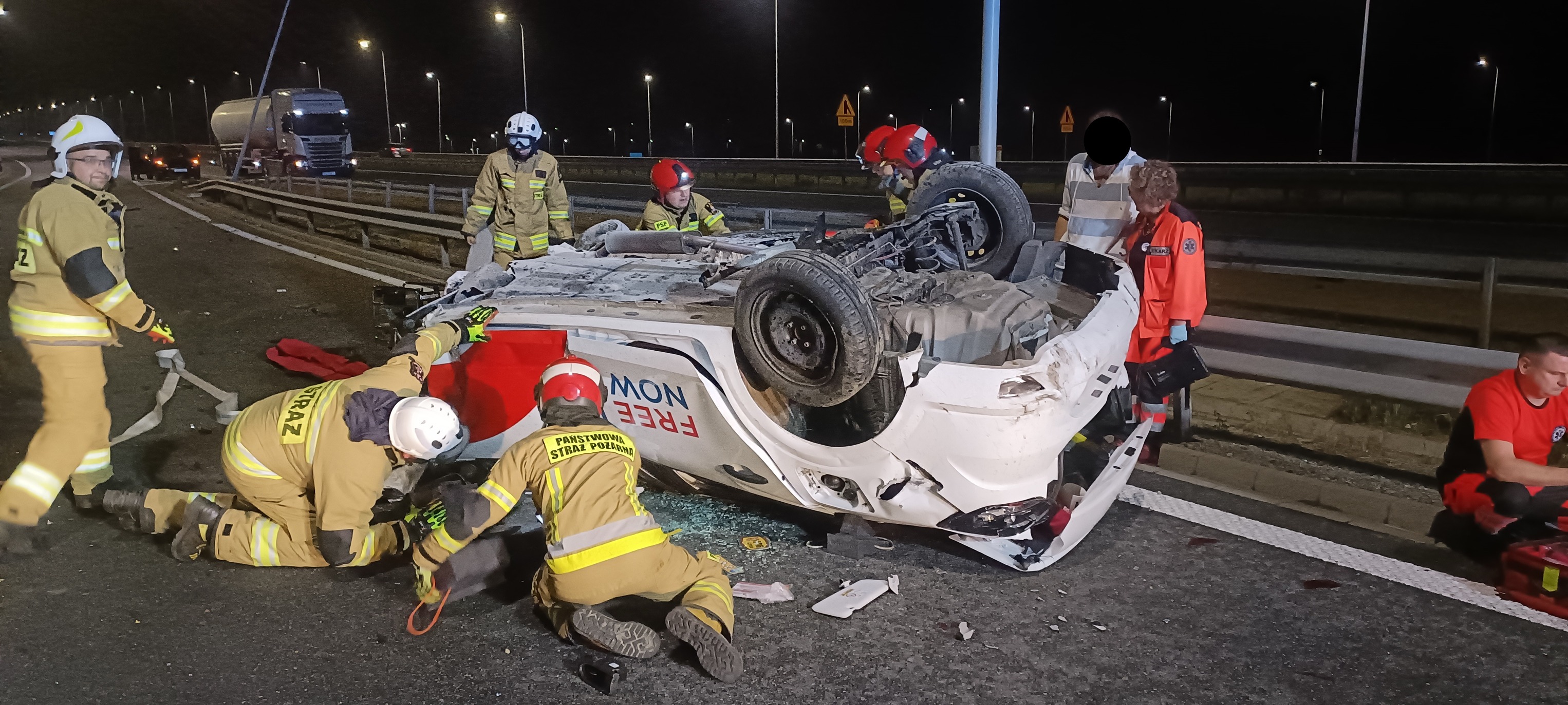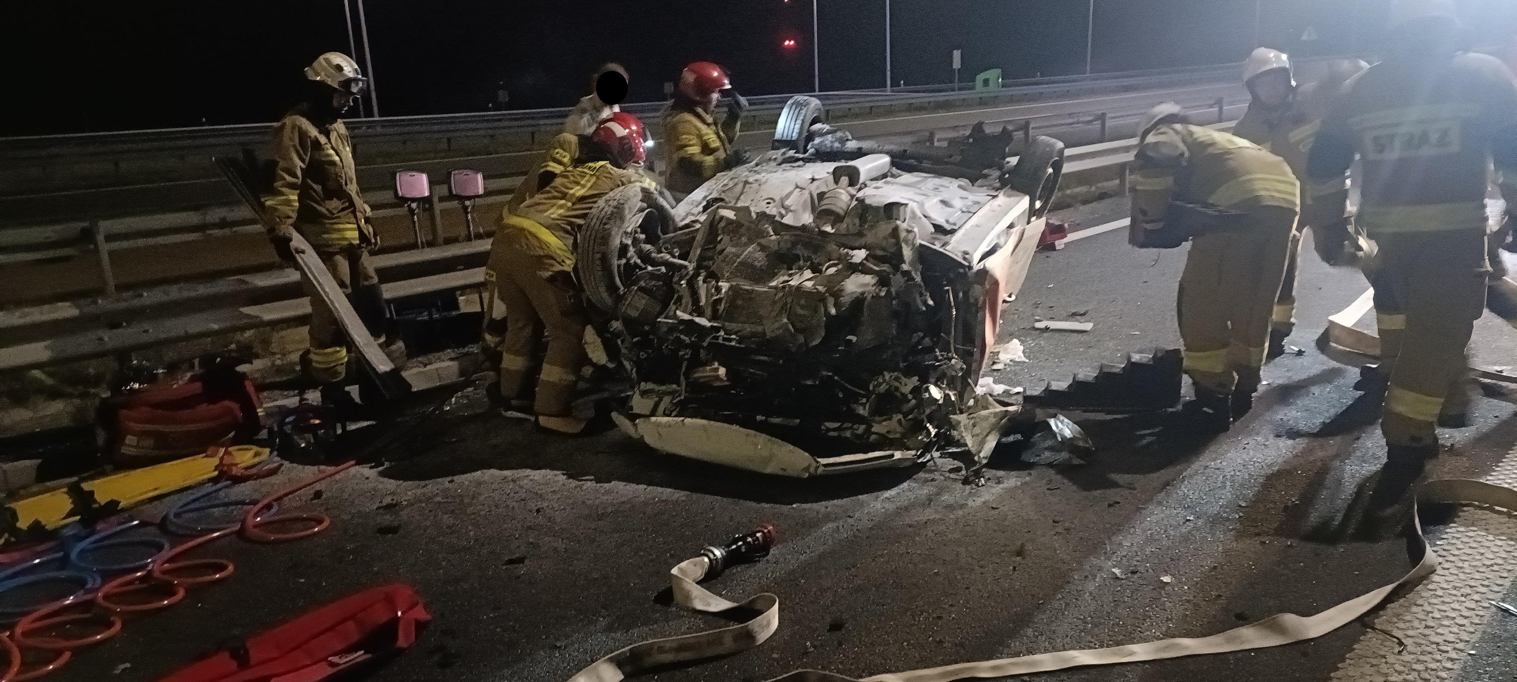 Dachowanie samochodu osobowego na drodze S7 w miejscowości Dworek