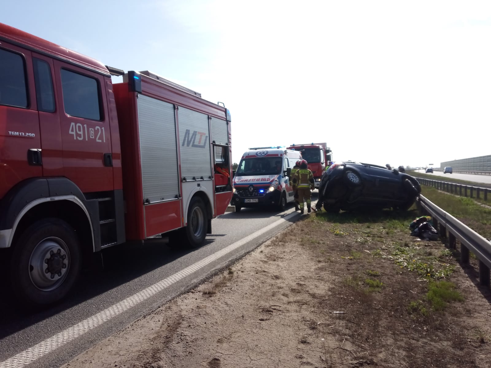 Dachowanie samochodu osobowego na trasie S7