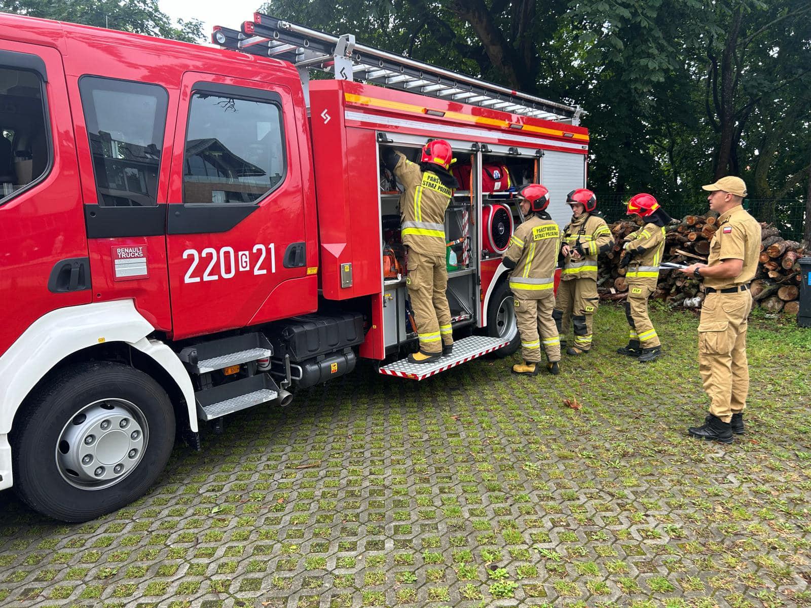 W ramach posterunku JRG na bazie OSP Krynica Morska stacjonuje zastęp Państwowej Straży Pożarnej z funkcjonariuszami naszej komendy raz odbywającymi praktyki podchorążymi Akademii Pożarniczej
