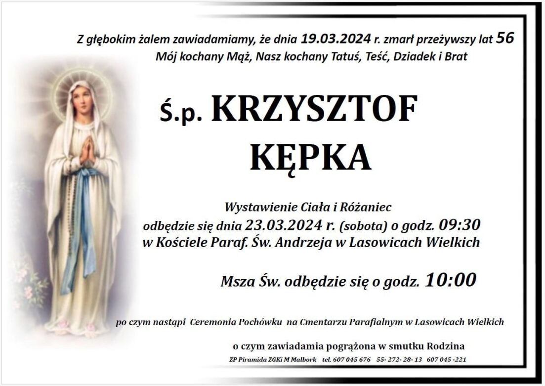 Z głębokim żalem zawiadamiamy, że 19 marca 2024 roku zmarł emerytowany, wieloletni funkcjonariusz Komedy Powiatowej PSP w Nowym Dworze Gdańskim ogn. w st. spocz. Krzysztof Kępka, pełniący służbę w latach 1991-2008.