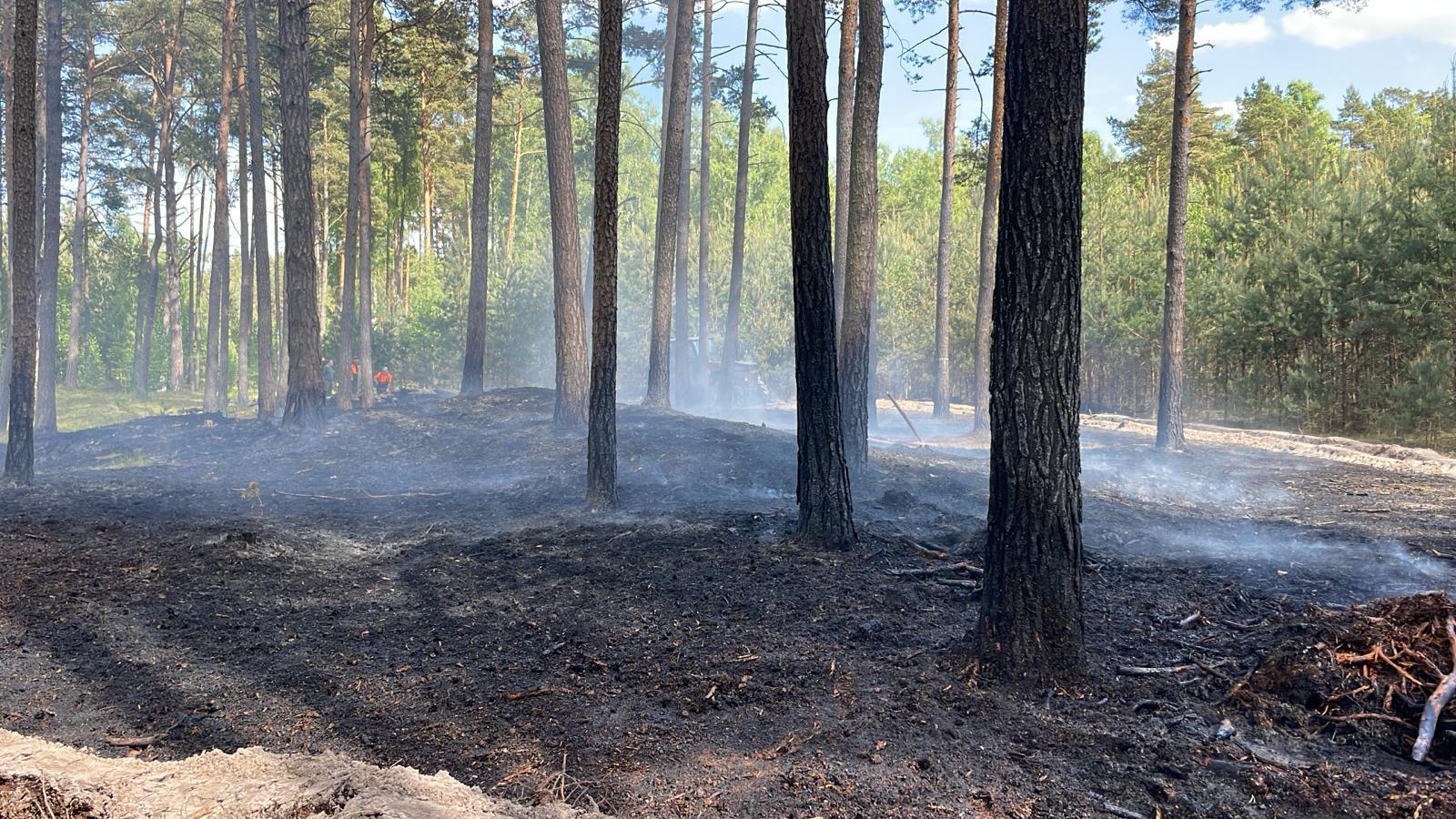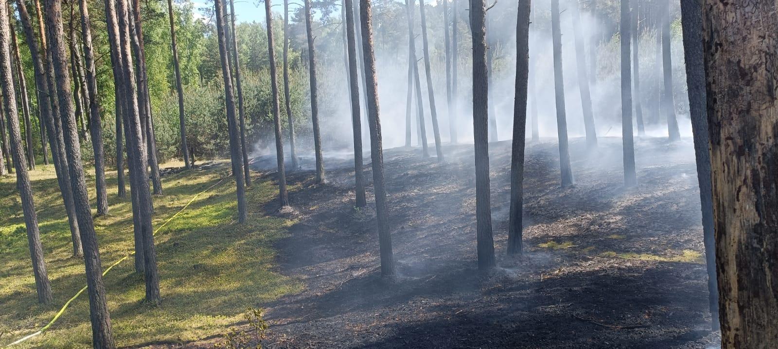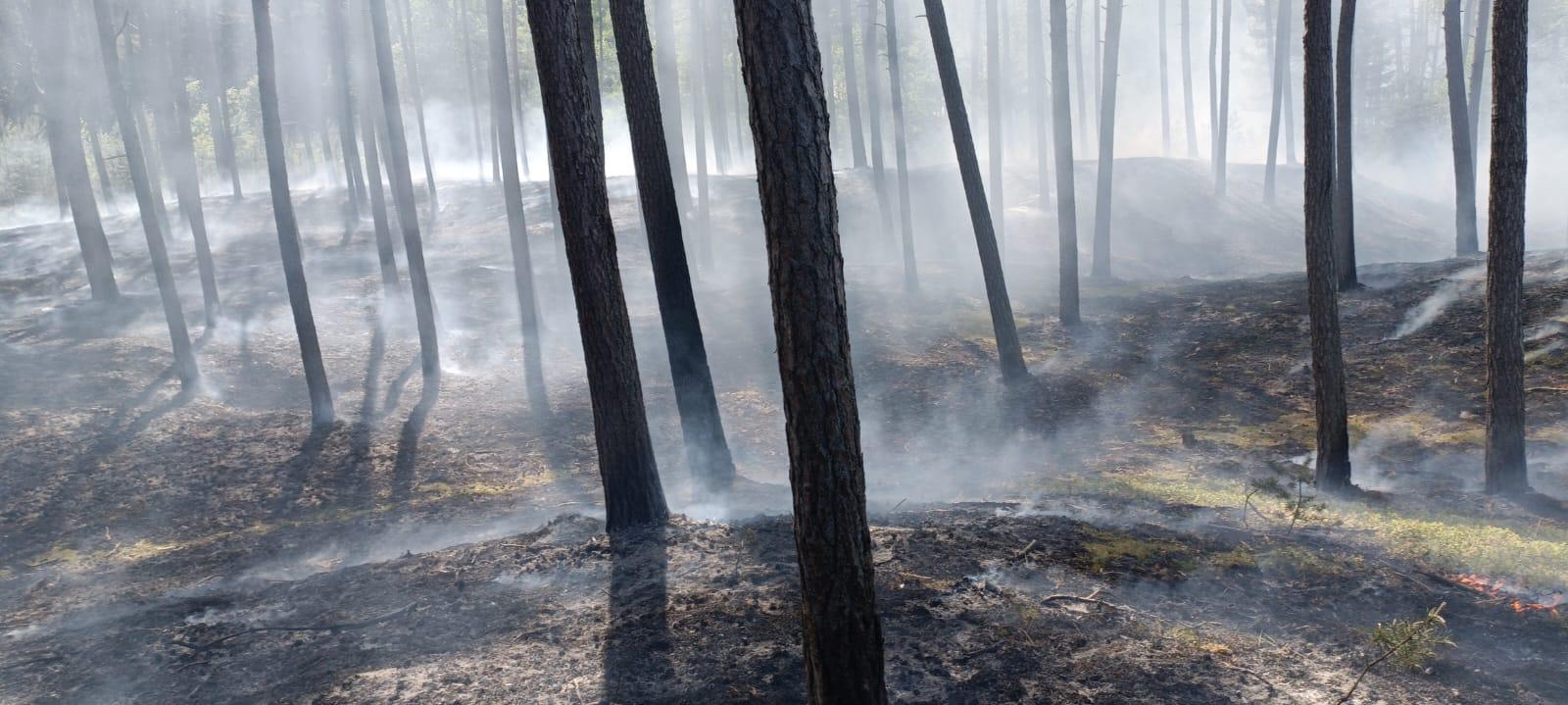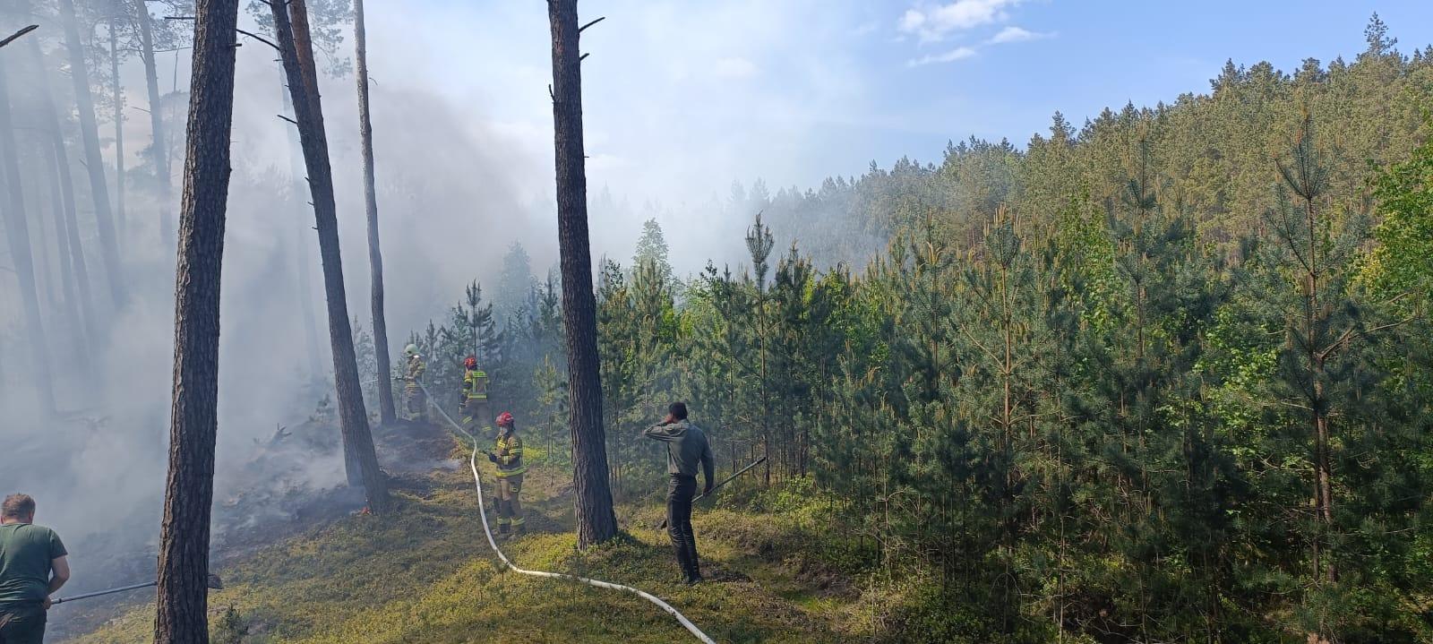 Dodatkowo przy użyciu tłumic gaszono ściółkę leśną w trudno dostępnych miejscach. Przy pomocy ciągnika rolniczego wezwanego przez Leśniczego Leśnictwa Jantar wykonano przecinkę przy pogorzelisku. W działaniach udział brały: