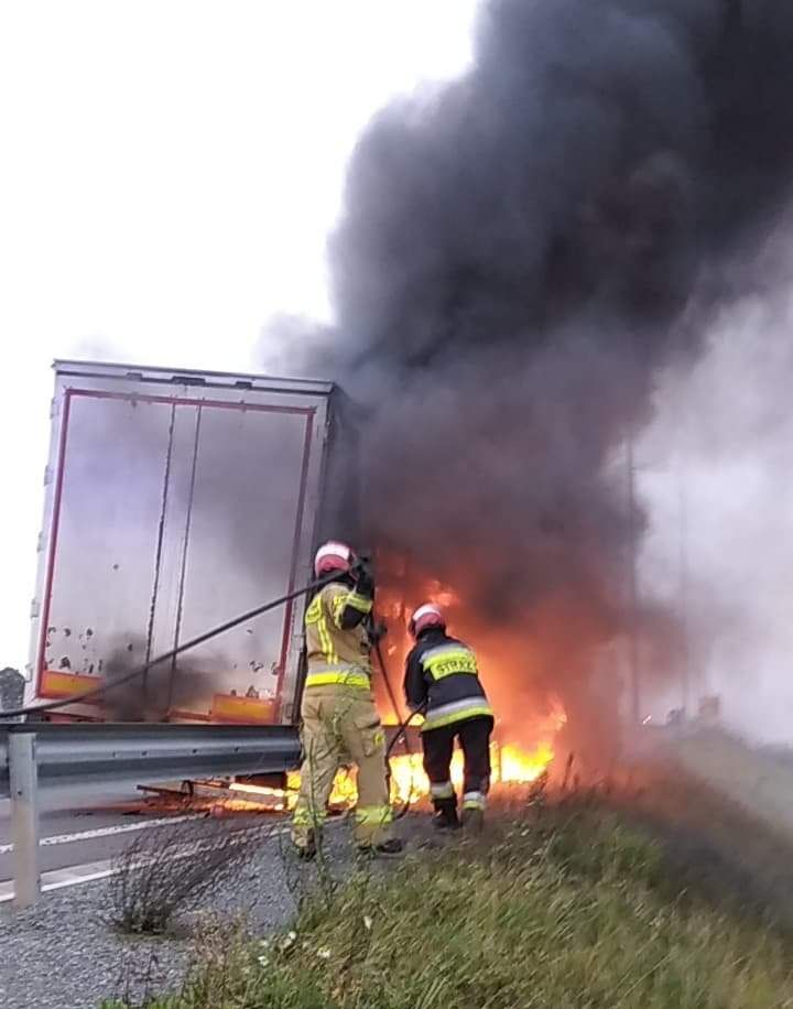 Pożar naczepy na S7