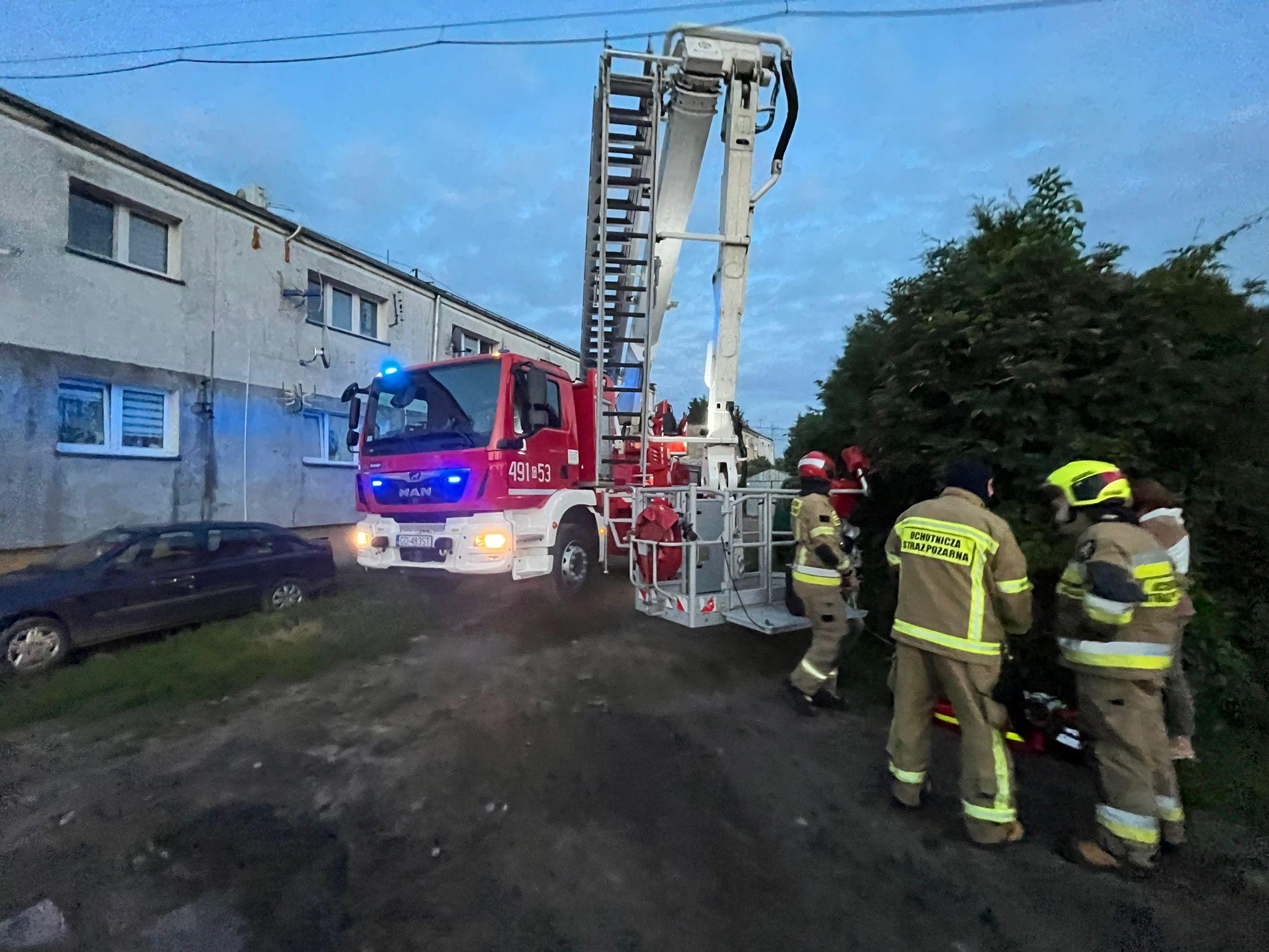 4 sierpnia 2025 roku o godzinie 20:19 Dyżurna Stanowiska Kierowania Komendanta Powiatowego PSP w Nowym Dworze Gdańskim otrzymała zgłoszenie o pożarze piwnicy w budynku mieszkalnym wielorodzinnym w miejscowości Myszkowo. Po dojeździe pierwszych zastępów straży pożarnej do piwnicy wprowadzono ratowników w aparatach ochrony układu oddechowego w celu znalezienia oraz ugaszenia źródła ognia, a w miedzy czasie prowadzono ewakuacje dwóch osób z mieszkania na pierwszym piętrze przy pomocy drabiny mechanicznej, którzy nie mogli się ewakuować klatką schodową przez bardzo duże zadymienie. Przed naszym przybyciem 9 osób samodzielnie zdołało opuścić budynek. Strażacy również ewakuowali pozostawione w mieszkaniach zwierzęta takie jak papuga oraz królik. Na miejsce przybył zespół ratownictwa medycznego, który po przebadaniu osób ewakuowanych nie podjął decyzji o potrzebie ich hospitalizacji. W działaniach brały udział: